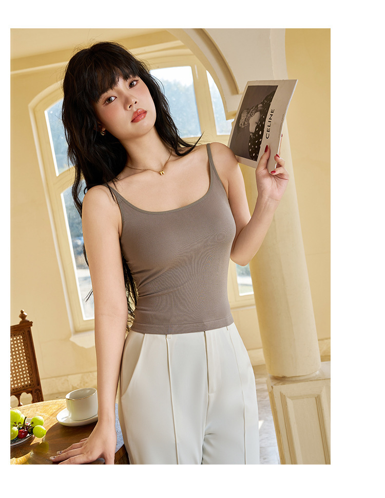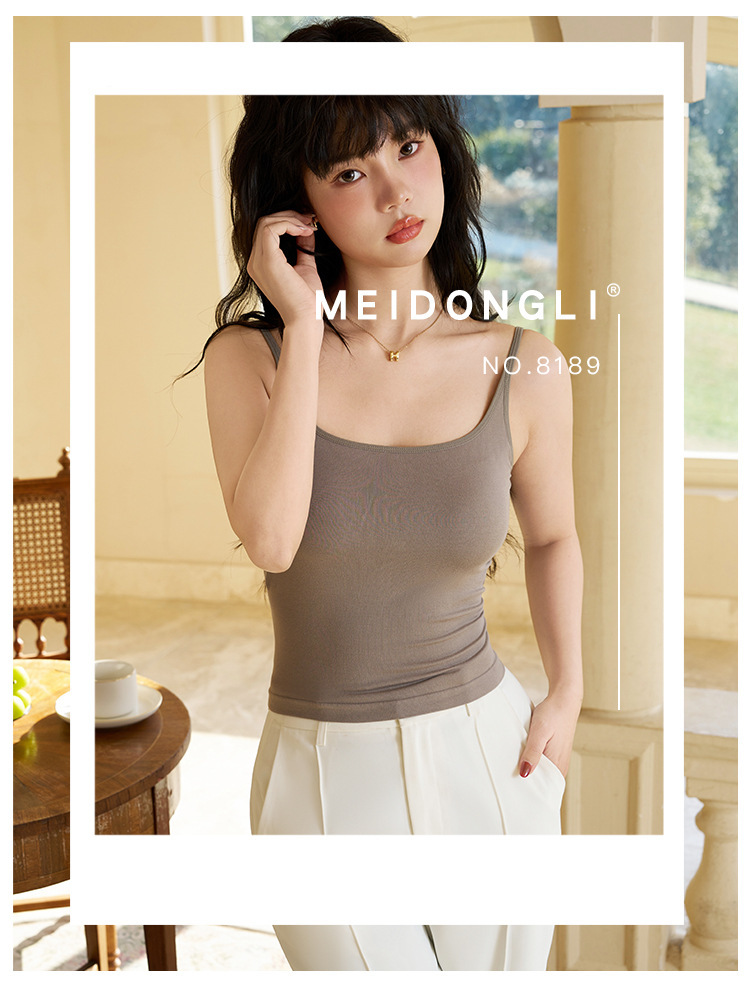 엄선된 봄 여름 모달 원단으로 제작된 심리스 에코 실크 일체형 속이 비치는 여성용 나시 탑, 외출복으로도 착용 가능