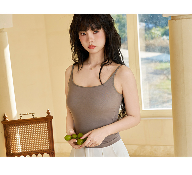 엄선된 봄 여름 모달 원단으로 제작된 심리스 에코 실크 일체형 속이 비치는 여성용 나시 탑, 외출복으로도 착용 가능스토어 가기