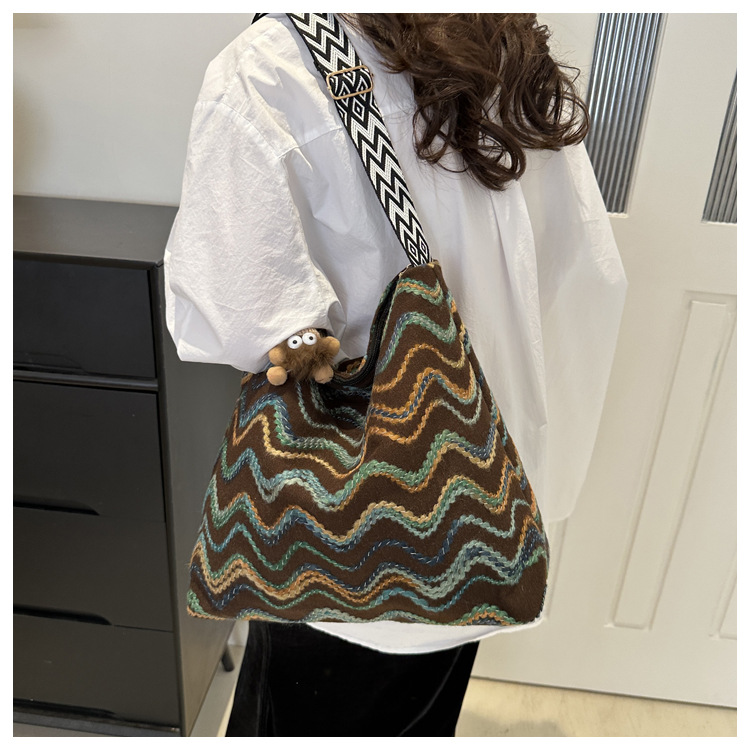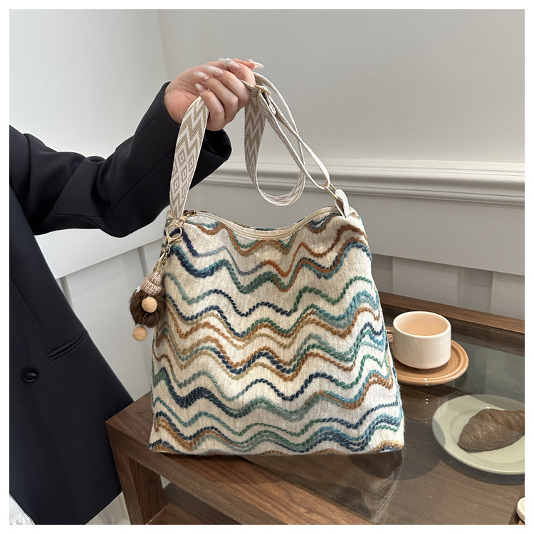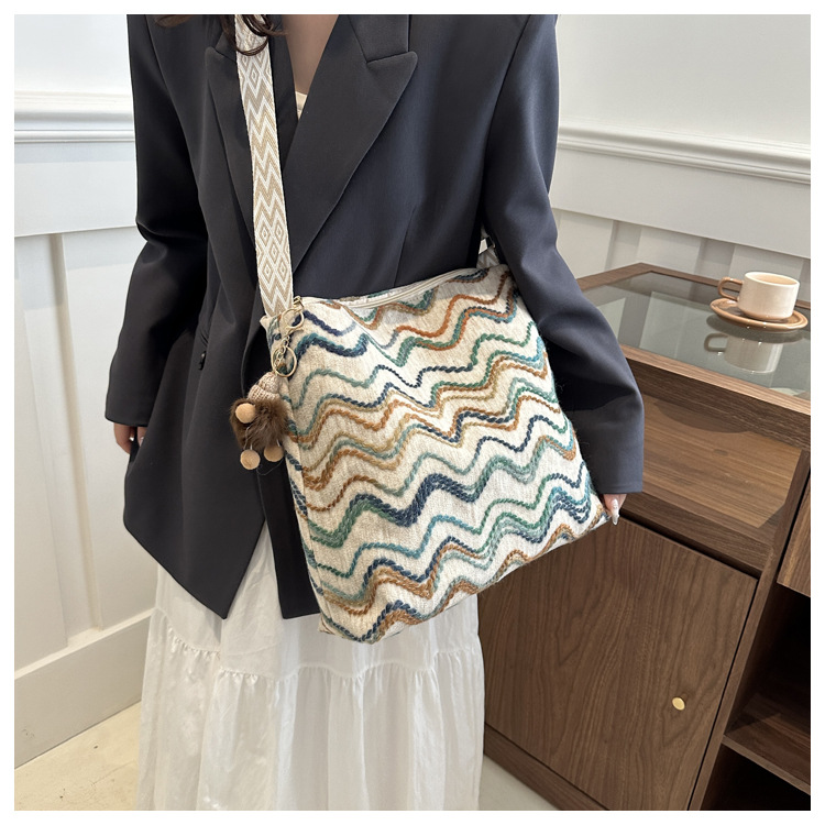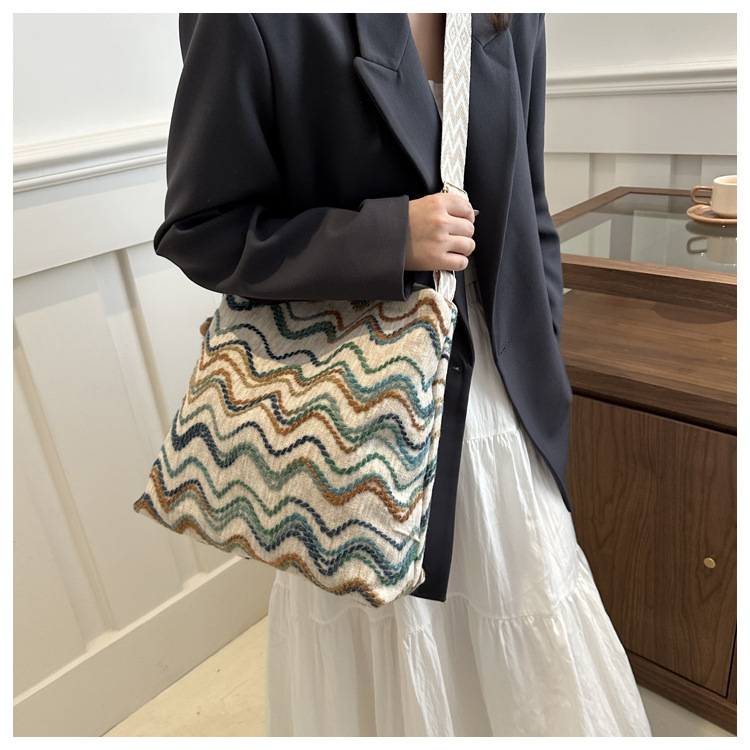 패션 통근 대용량 토트 백 여성의 2024 새로운 겨드랑이 어깨 가방 모든 경기 특성 민족 스타일 크로스 바디 백