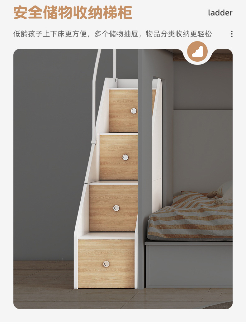 어린이 다기능 조합 옷장 침대 높고 낮은 침대 보관 EG 더블 침대 아래 옷장스토어 가기
