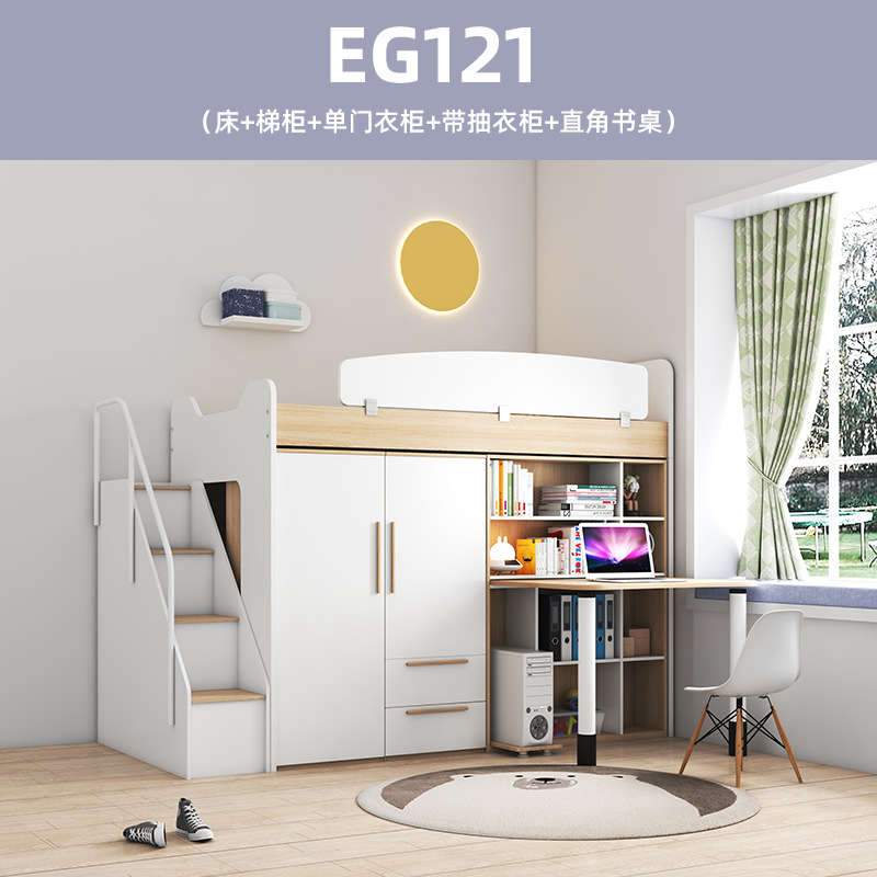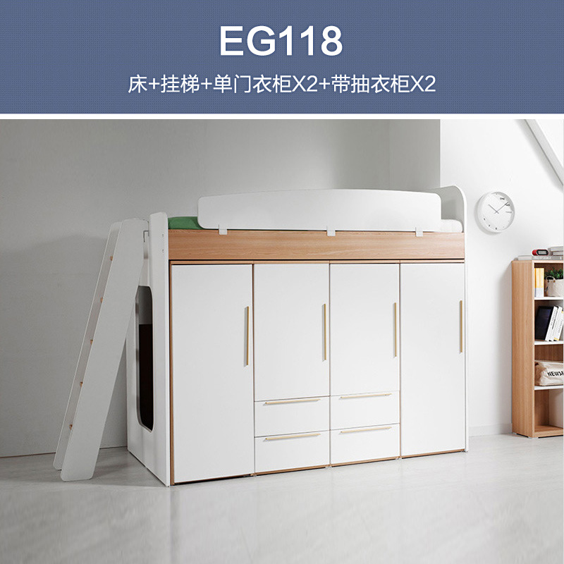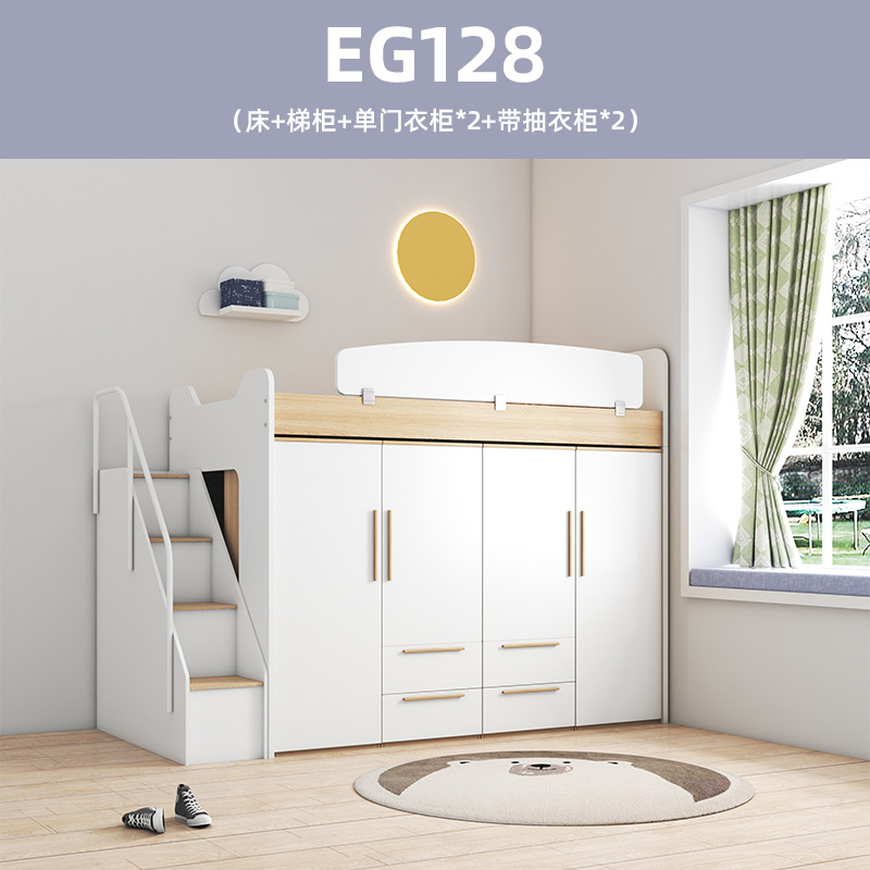 어린이 다기능 조합 옷장 침대 높고 낮은 침대 보관 EG 더블 침대 아래 옷장