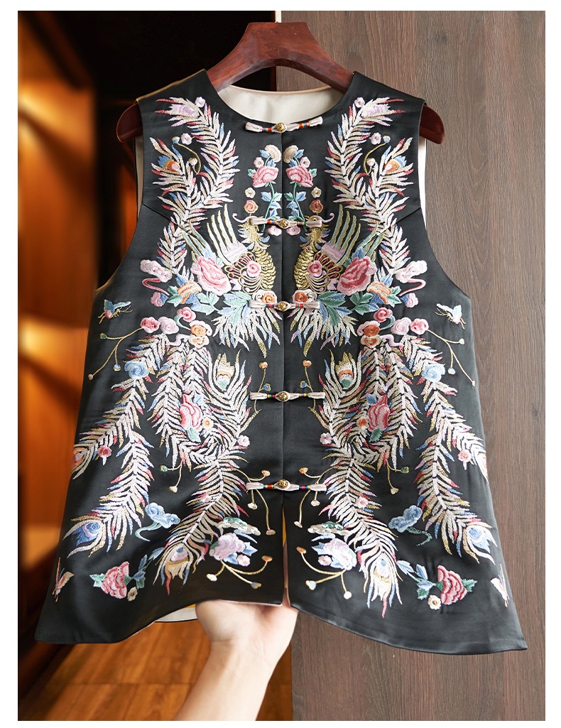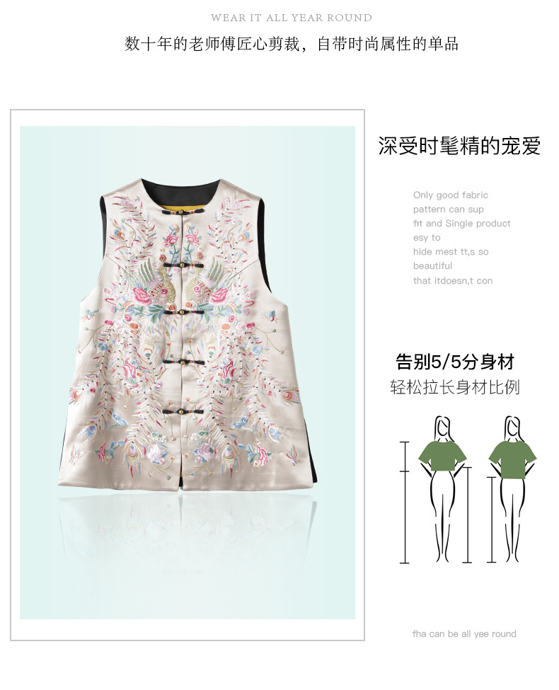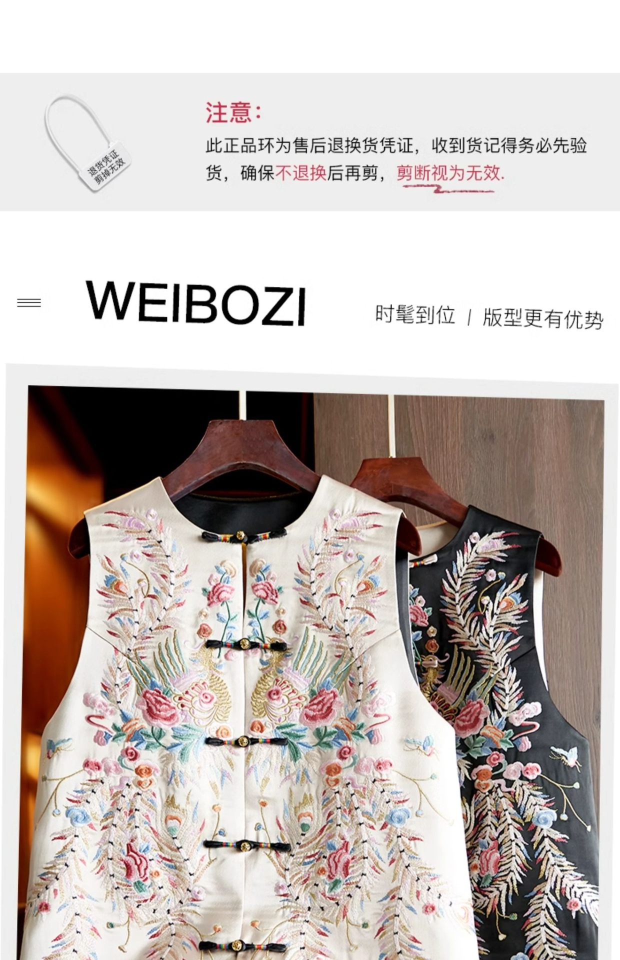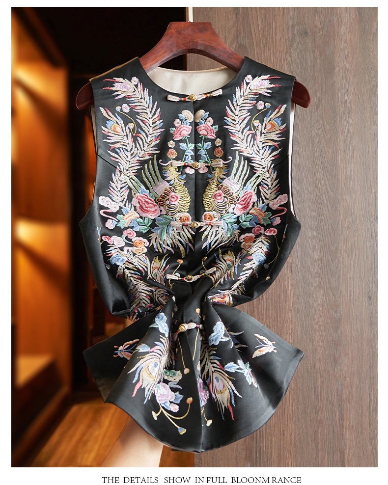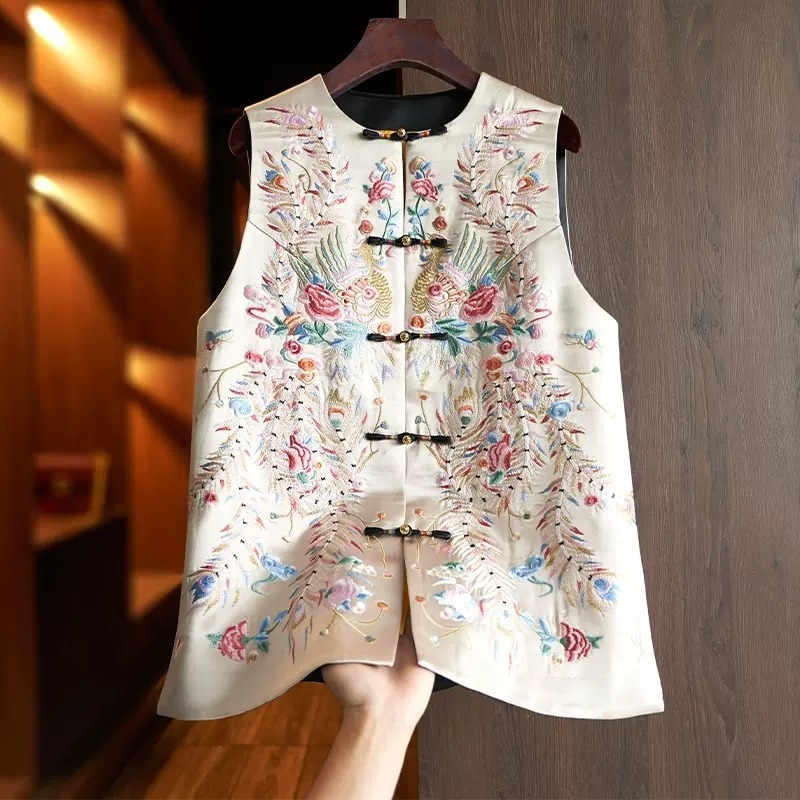 고급 중공업 국가 패션 자수 Acetic Vest 여성의 새로운 빈티지 버클 새로운 중국 스타일 스택 탑스토어 가기