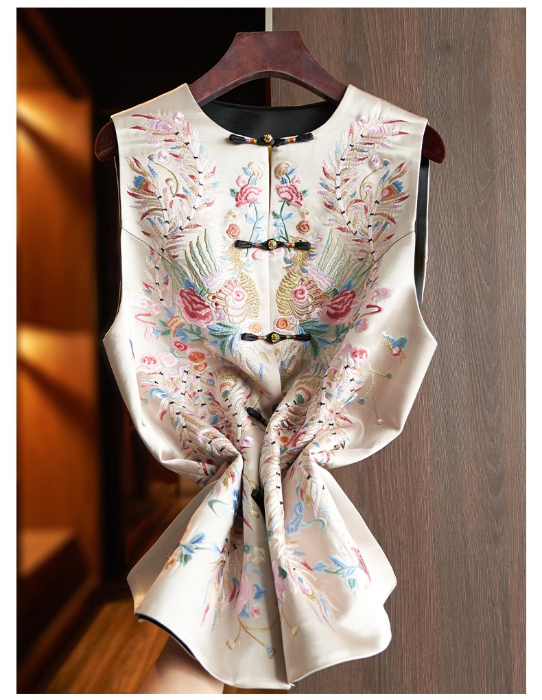 고급 중공업 국가 패션 자수 Acetic Vest 여성의 새로운 빈티지 버클 새로운 중국 스타일 스택 탑