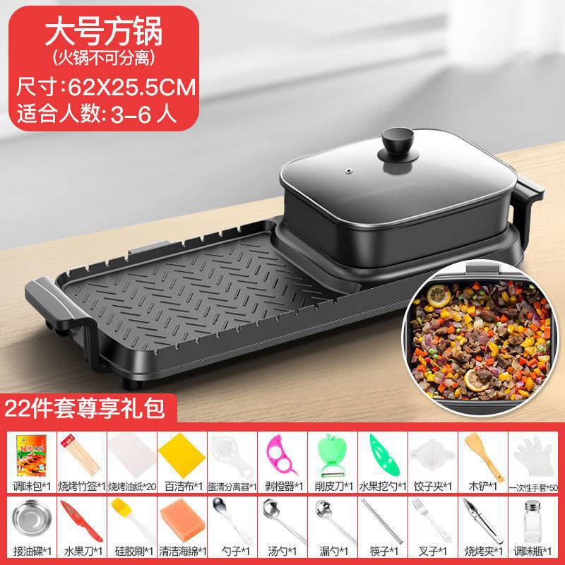 • 이중 온도 조절 냄비는 대형 사각 냄비로 나누어 22피스 바비큐 세트로 제공됩니다.