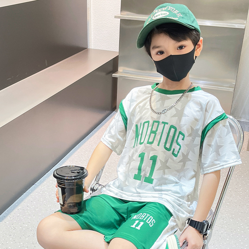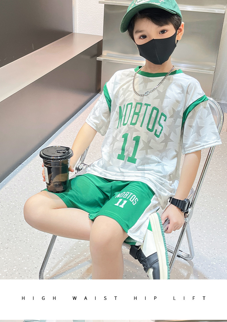 어린이 농구복 2025 여름 신상 어린이 반팔 티셔츠 세트 남아용 속건성 의류 중소 어린이 운동복스토어 가기