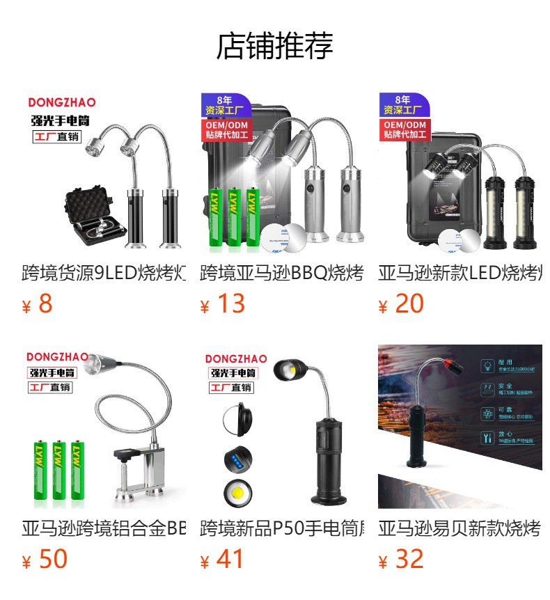 국경 강한 빛 LED 바베큐 빛 야외 방수 알루미늄 합금 충전식 손전등 360 도 회전 호스 작업 조명스토어 가기