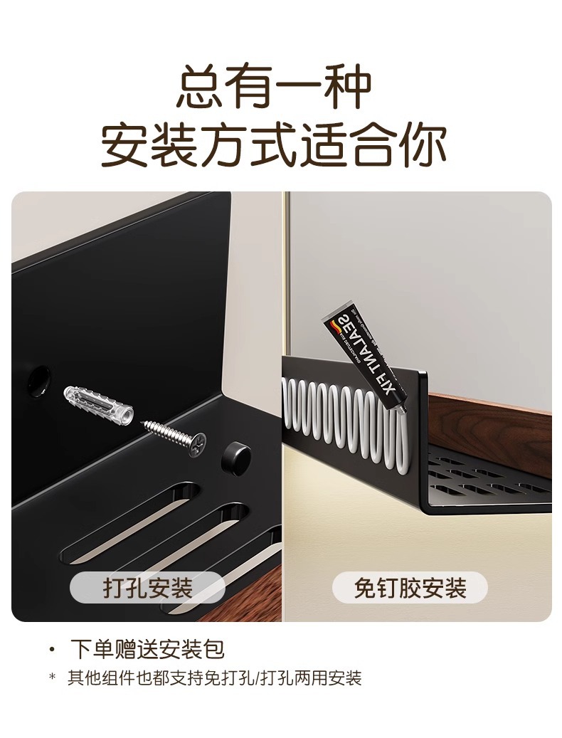 • 【월넛 + 블랙】 홈붙이 수도꼭지 선반 50cm