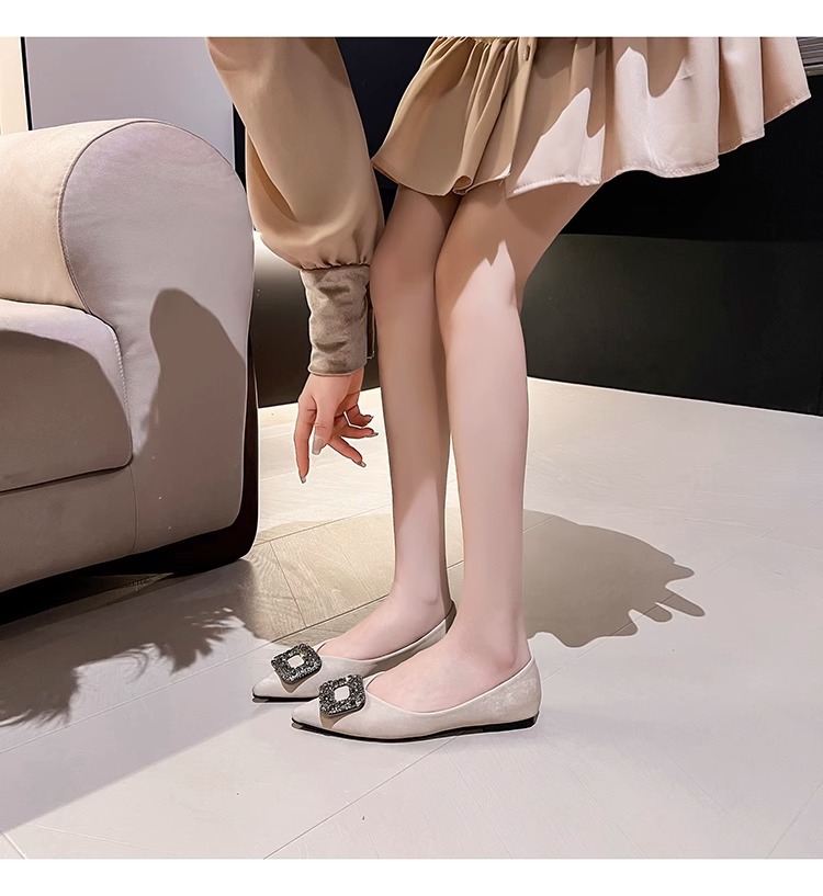 프랑스 뾰족한 발가락 신발 여성 플랫 2024 새로운 봄 신발 광장 버클 우아한 무당 신발 대형 41-42스토어 가기