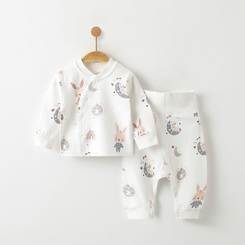 아기의 가을 옷 긴 바지 면 아기의 높은 허리 배꼽 세트 속옷 면 아기 잠옷 홈 옷