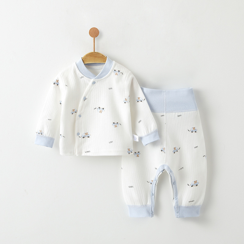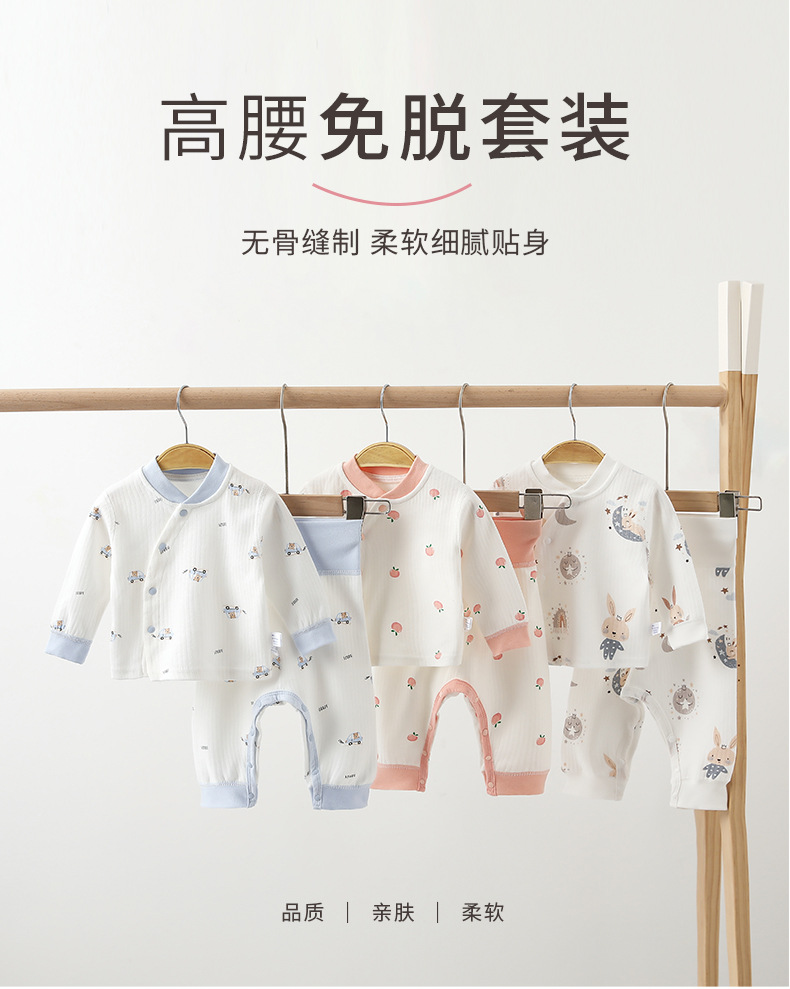 아기의 가을 옷 긴 바지 면 아기의 높은 허리 배꼽 세트 속옷 면 아기 잠옷 홈 옷스토어 가기