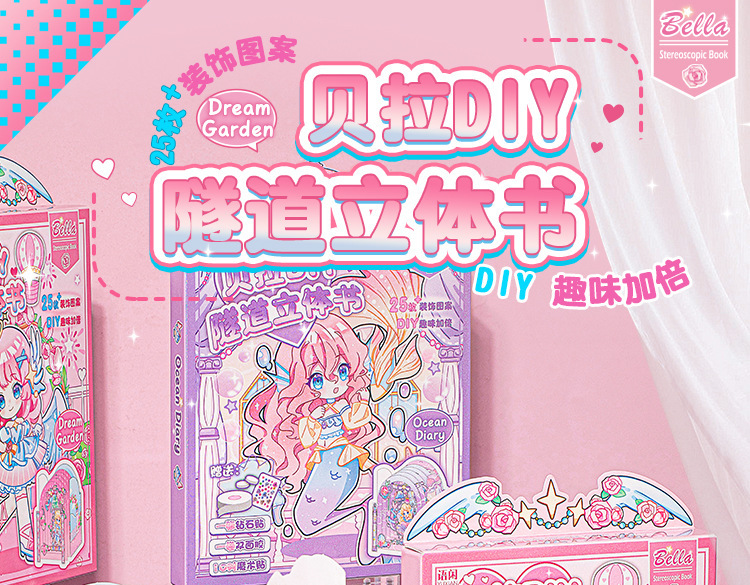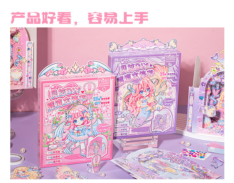 Lexian Bella 터널 팝업 책 선물 상자 귀여운 만화 소녀 어린이 컷-무료 수제 풍경 조용한 책