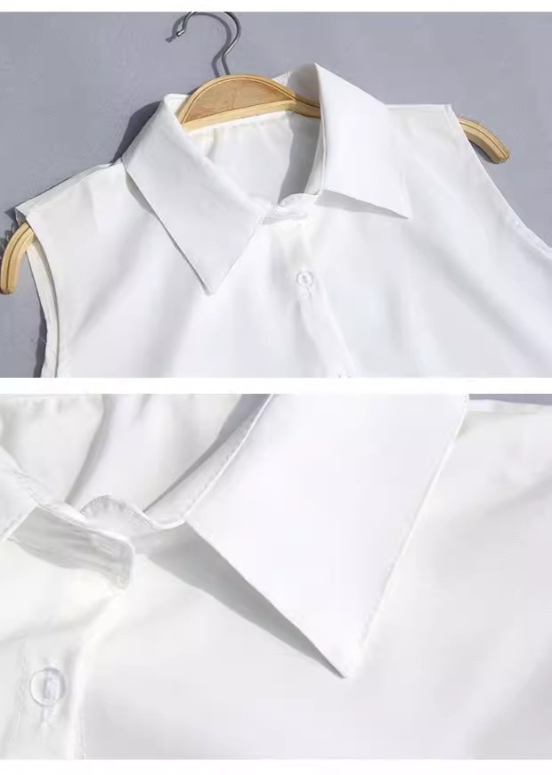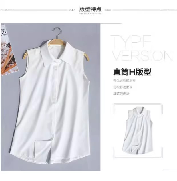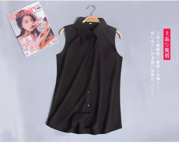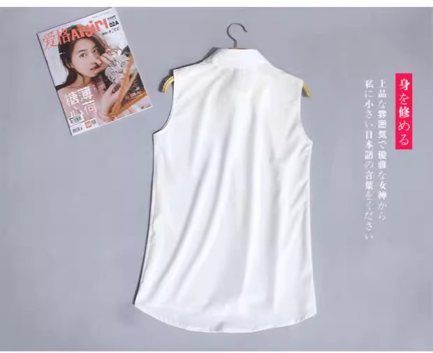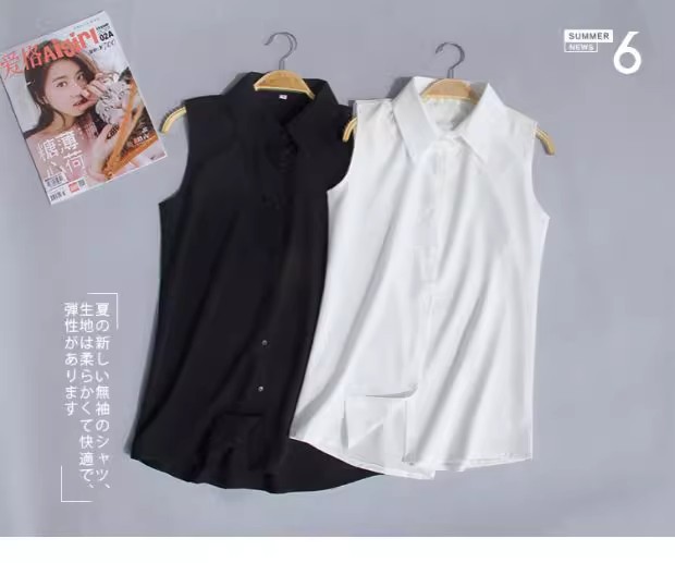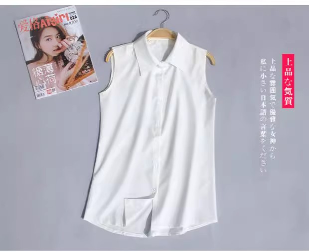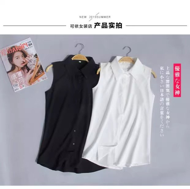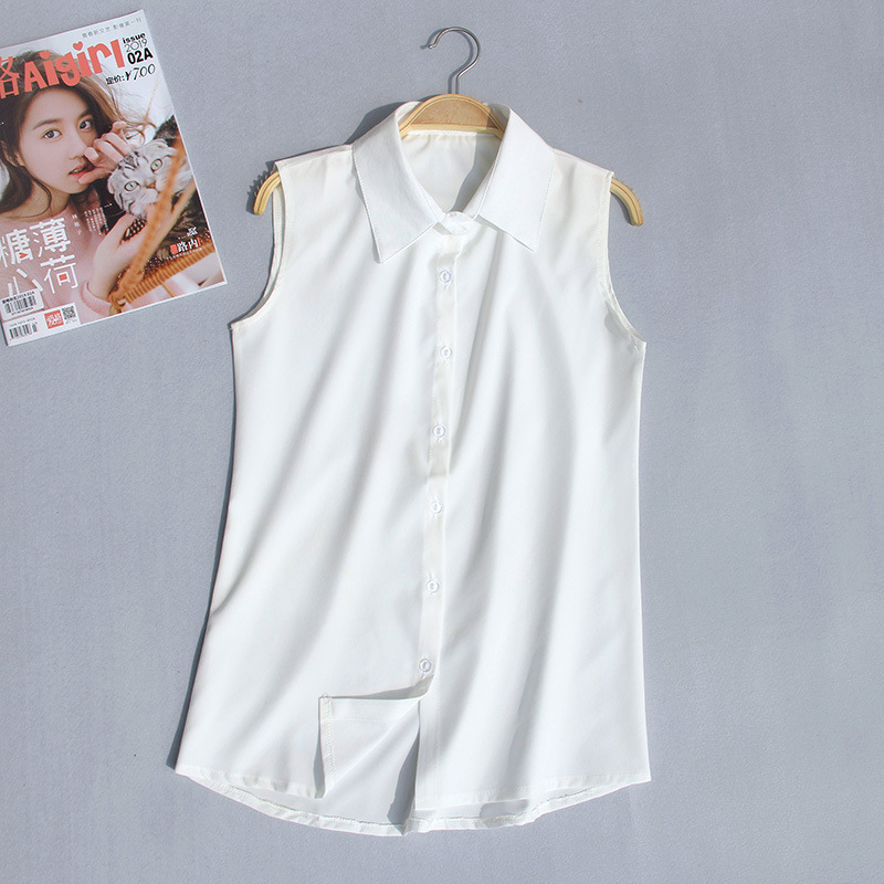 전문 셔츠 내베이스 셔츠 한국식 탑 여성 여름 옷깃 쉬폰 셔츠 민소매 조끼 화이트 셔츠