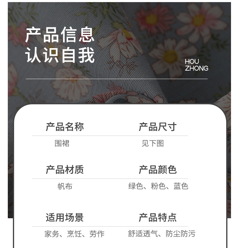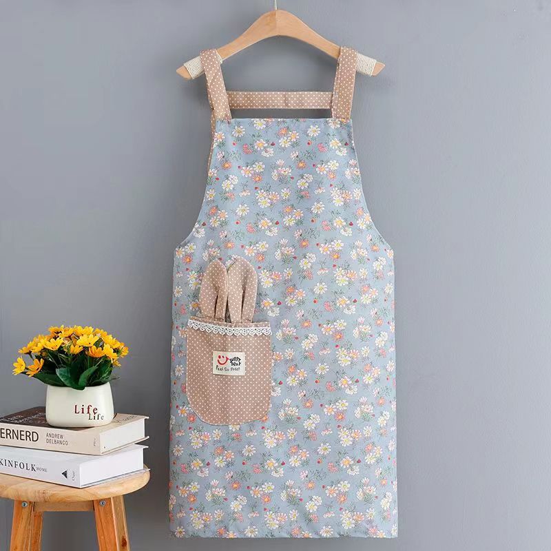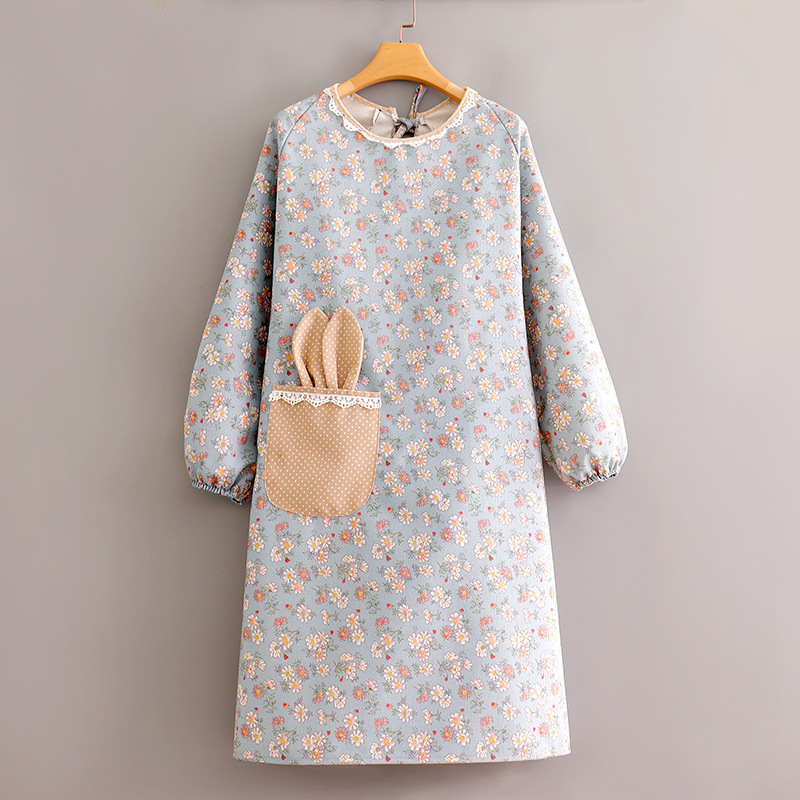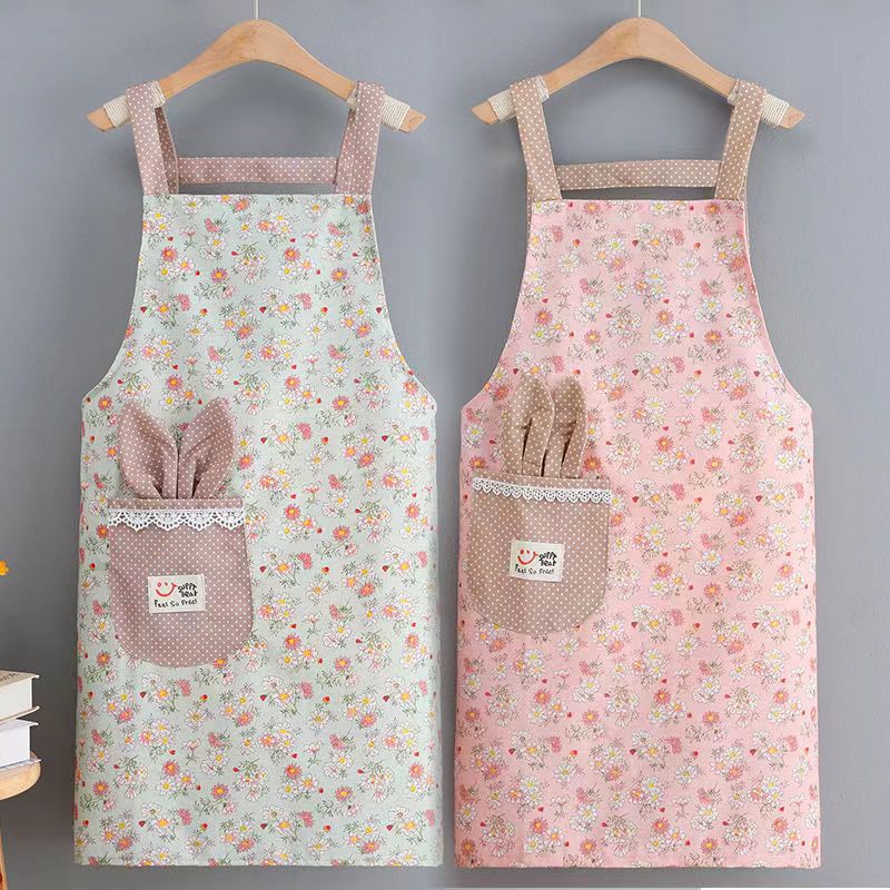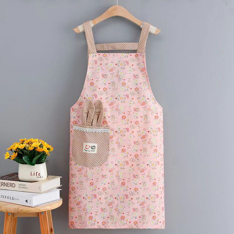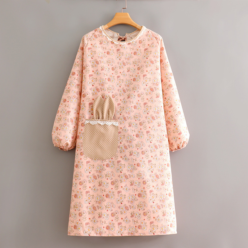 목가적 인 스타일 앞치마 주방 가정 패션 귀여운 요리 허리 방수 오일 오버볼 여성 케이터링 작업 옷