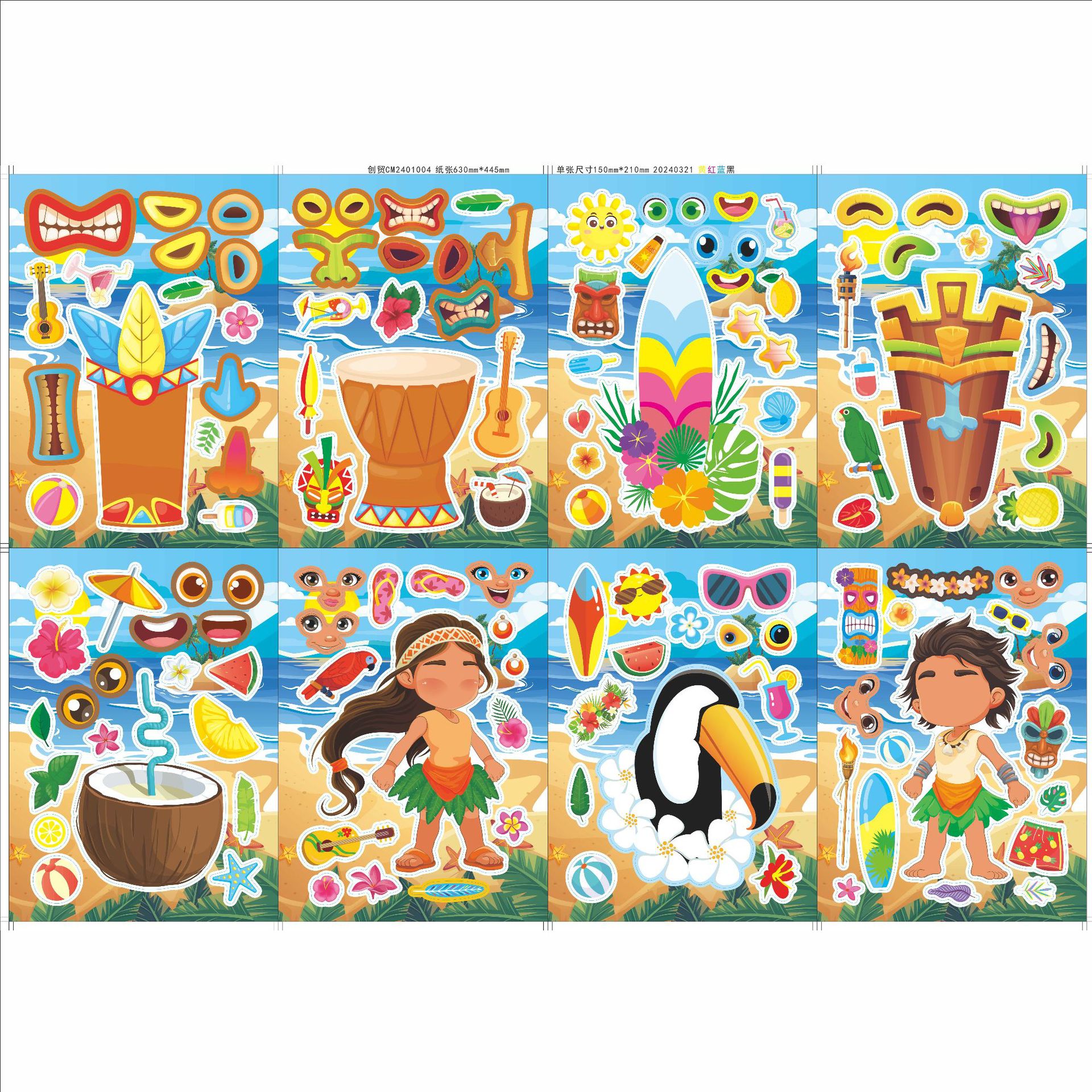 CM2401004 어린이 애니메이션 귀여운 만화 여름 스타일 테마 교육 대화 형 퍼즐 DIY 얼굴 스티커