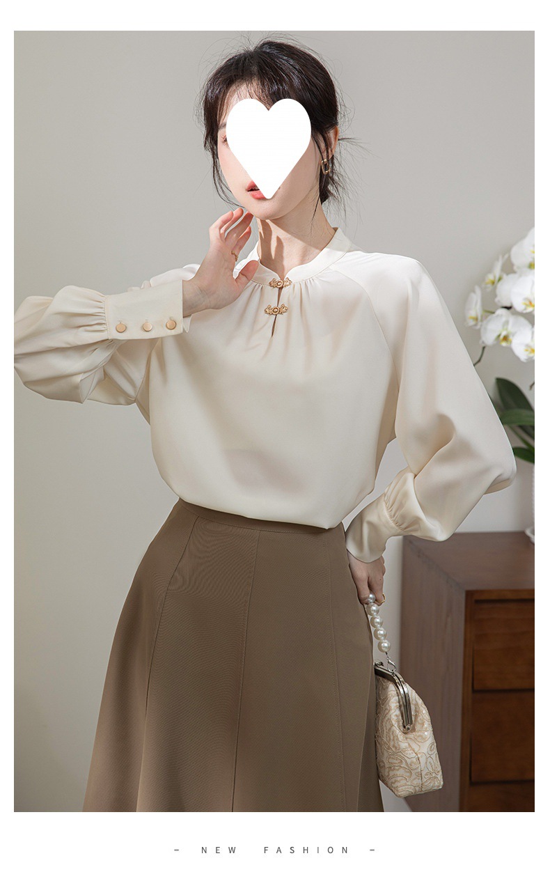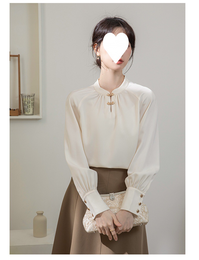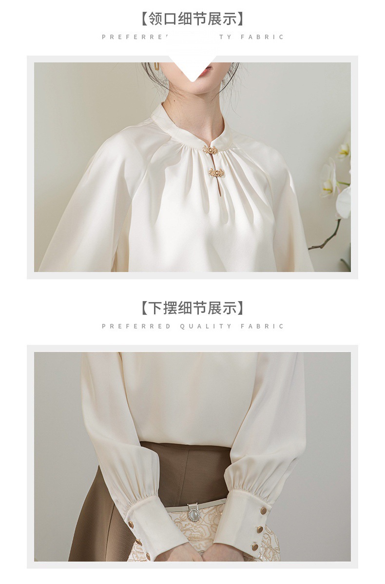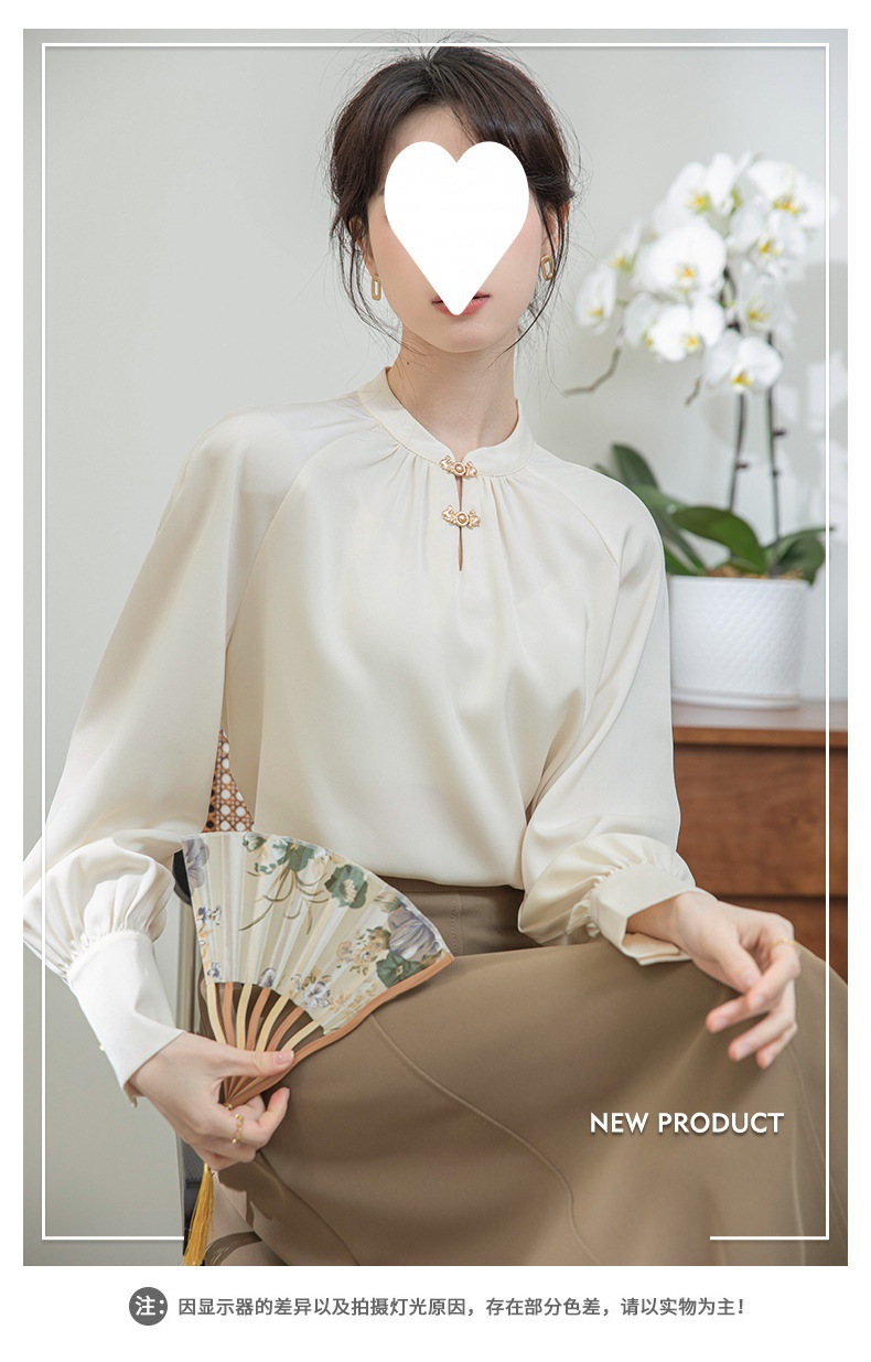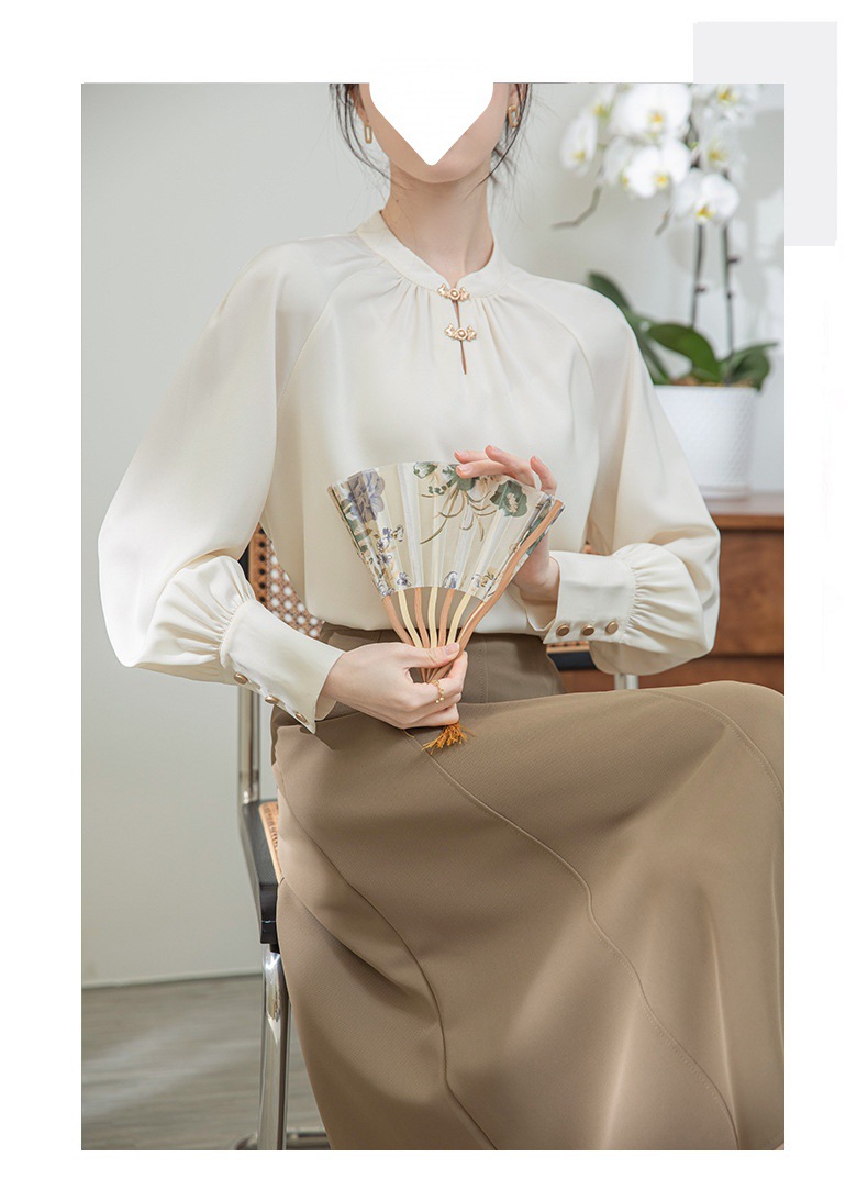 리얼 샷 새로운 중국 살구색 셔츠 여성의 긴 소매 아름다운 복고풍 중국 스타일의 말 얼굴 스커트 탑 매칭