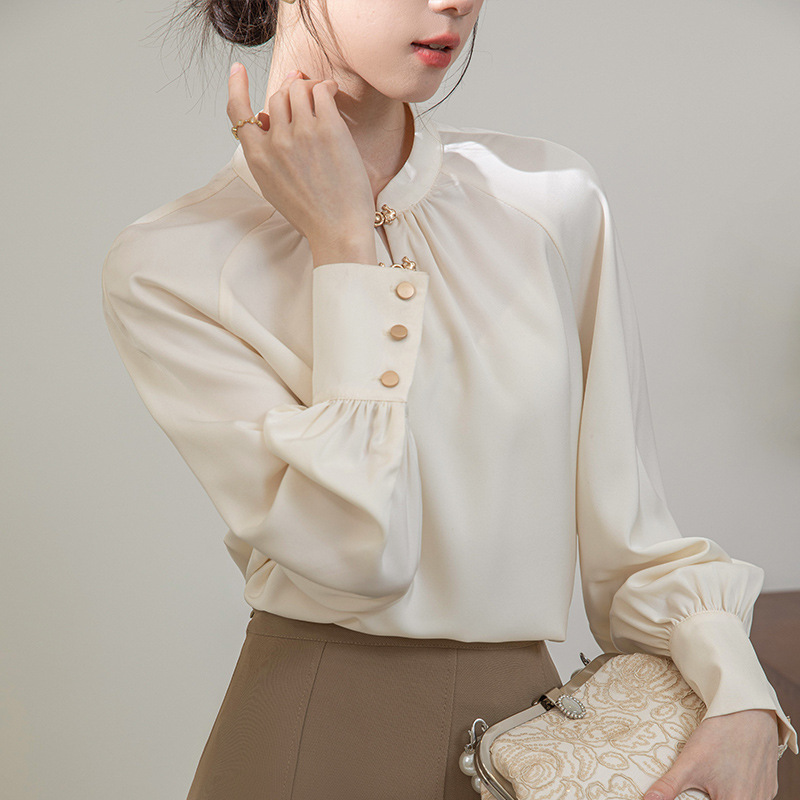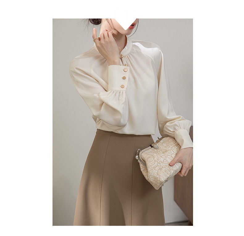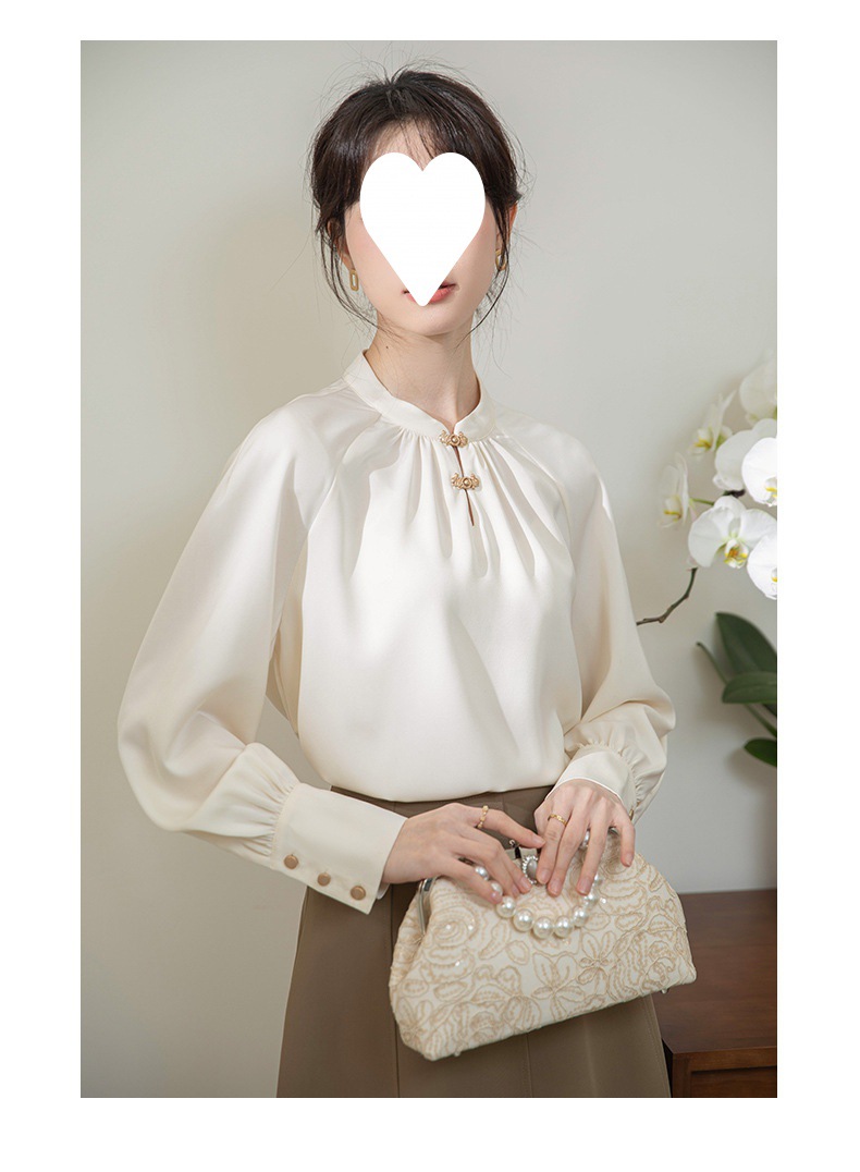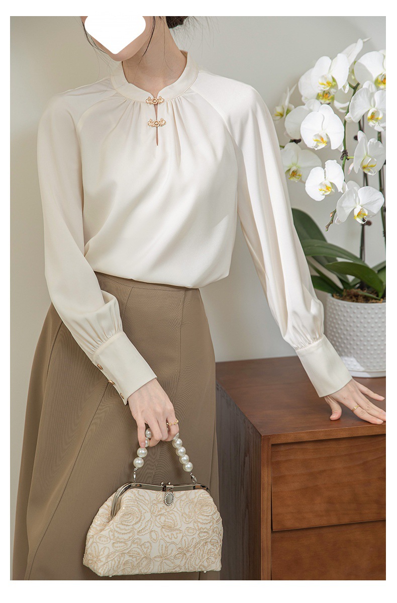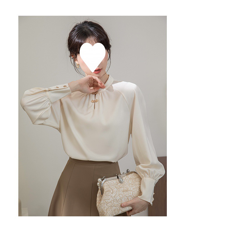 리얼 샷 새로운 중국 살구색 셔츠 여성의 긴 소매 아름다운 복고풍 중국 스타일의 말 얼굴 스커트 탑 매칭