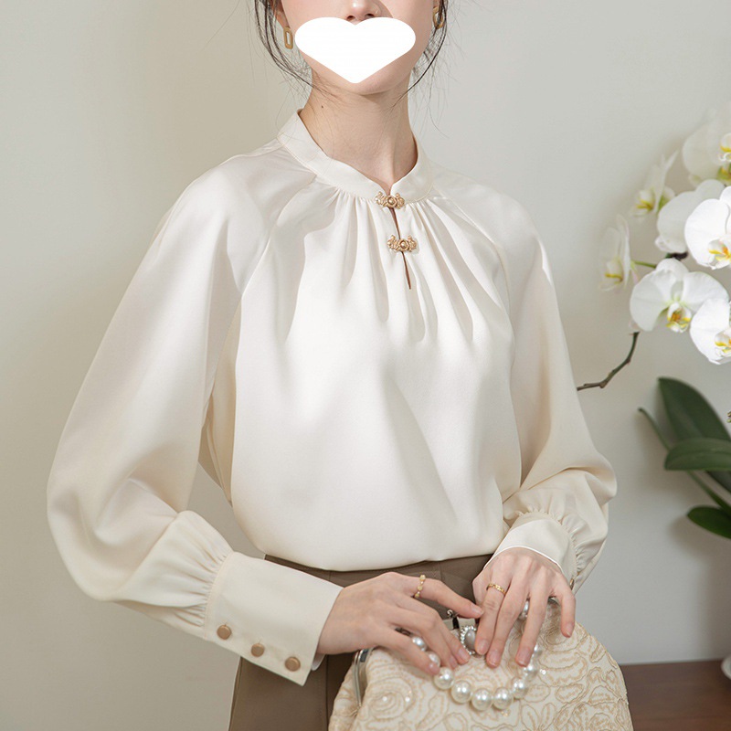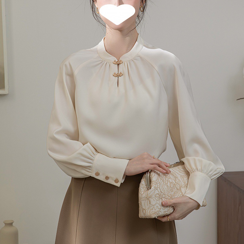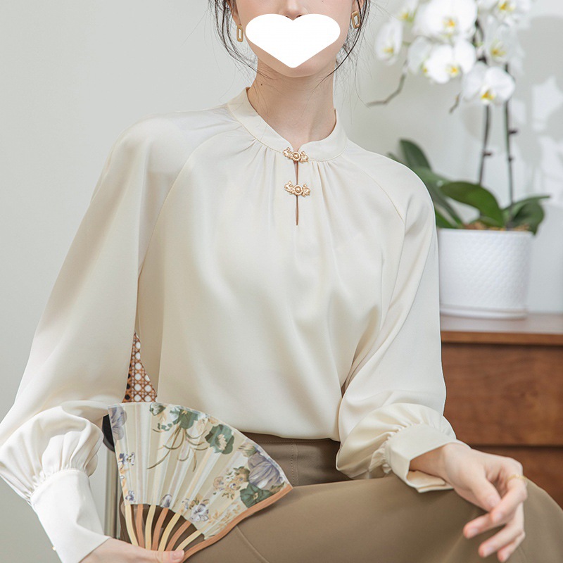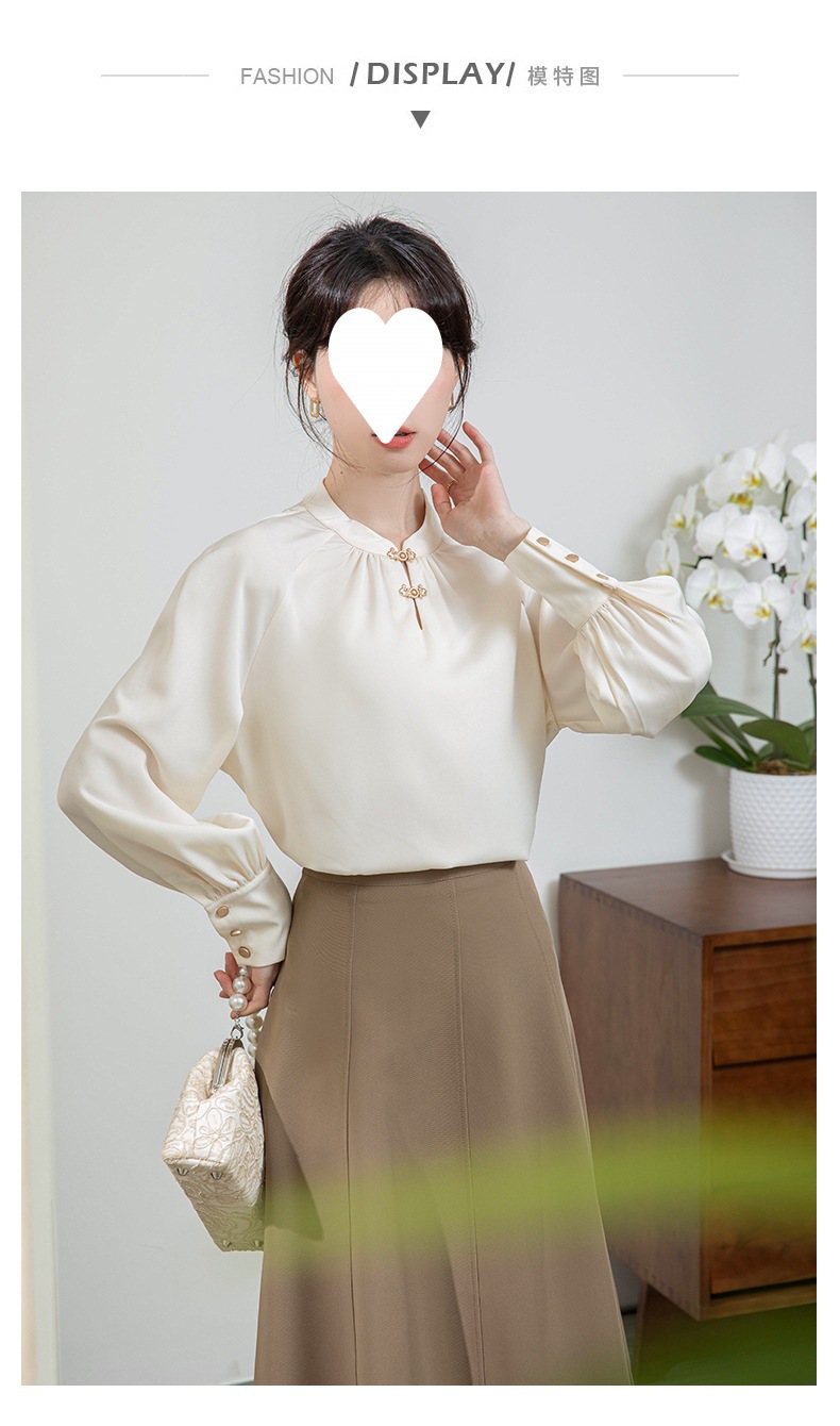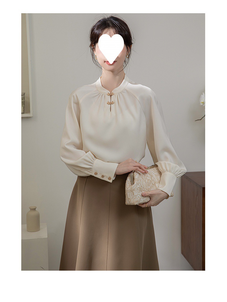 리얼 샷 새로운 중국 살구색 셔츠 여성의 긴 소매 아름다운 복고풍 중국 스타일의 말 얼굴 스커트 탑 매칭스토어 가기
