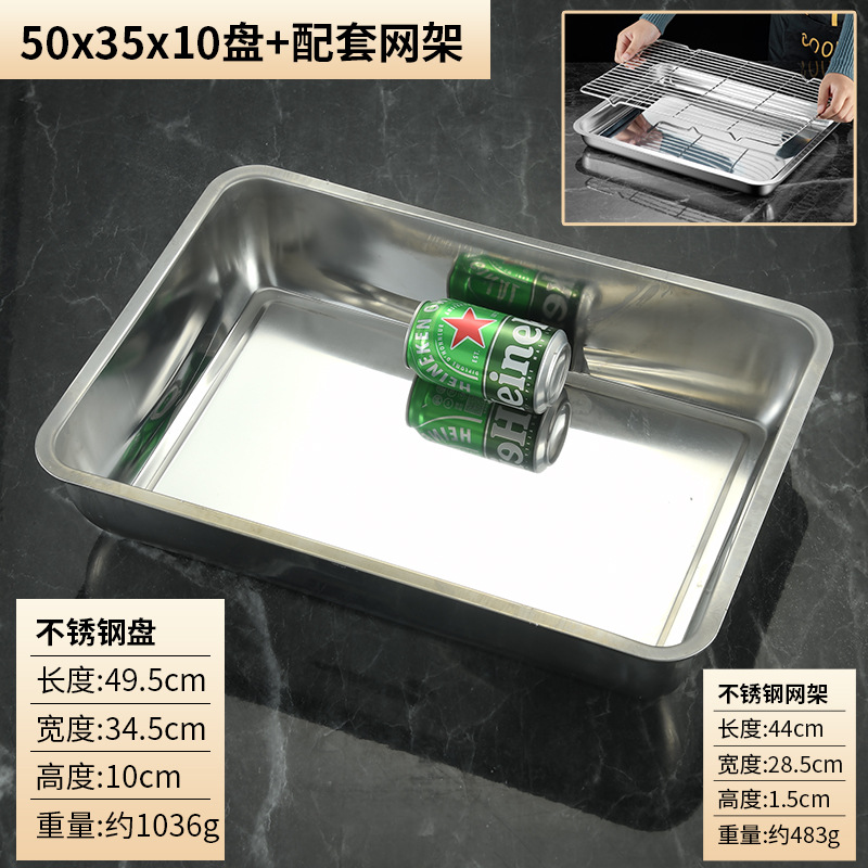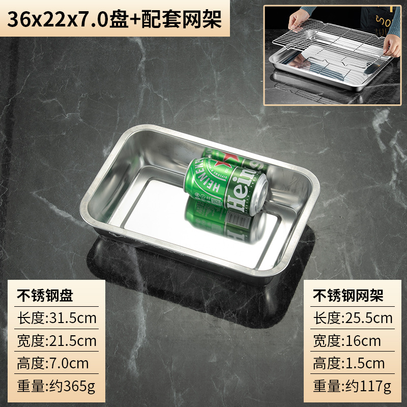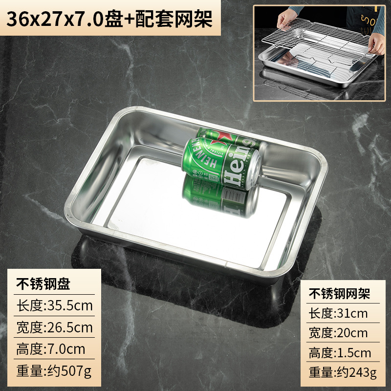 네트 오일 컨트롤 넷 랙이있는 304 스테인레스 스틸 스퀘어 플레이트 상업용 트레이 배수 오일 유출 트레이 오일 필터 트레이 튀긴 꼬치 바베큐 트레이