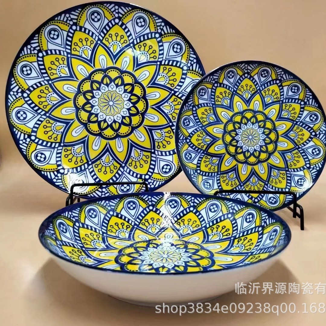 새로운 일본 보헤미안 스타일 유약 컬러 세라믹 식기 세척기 레스토랑 사용 가능스토어 가기