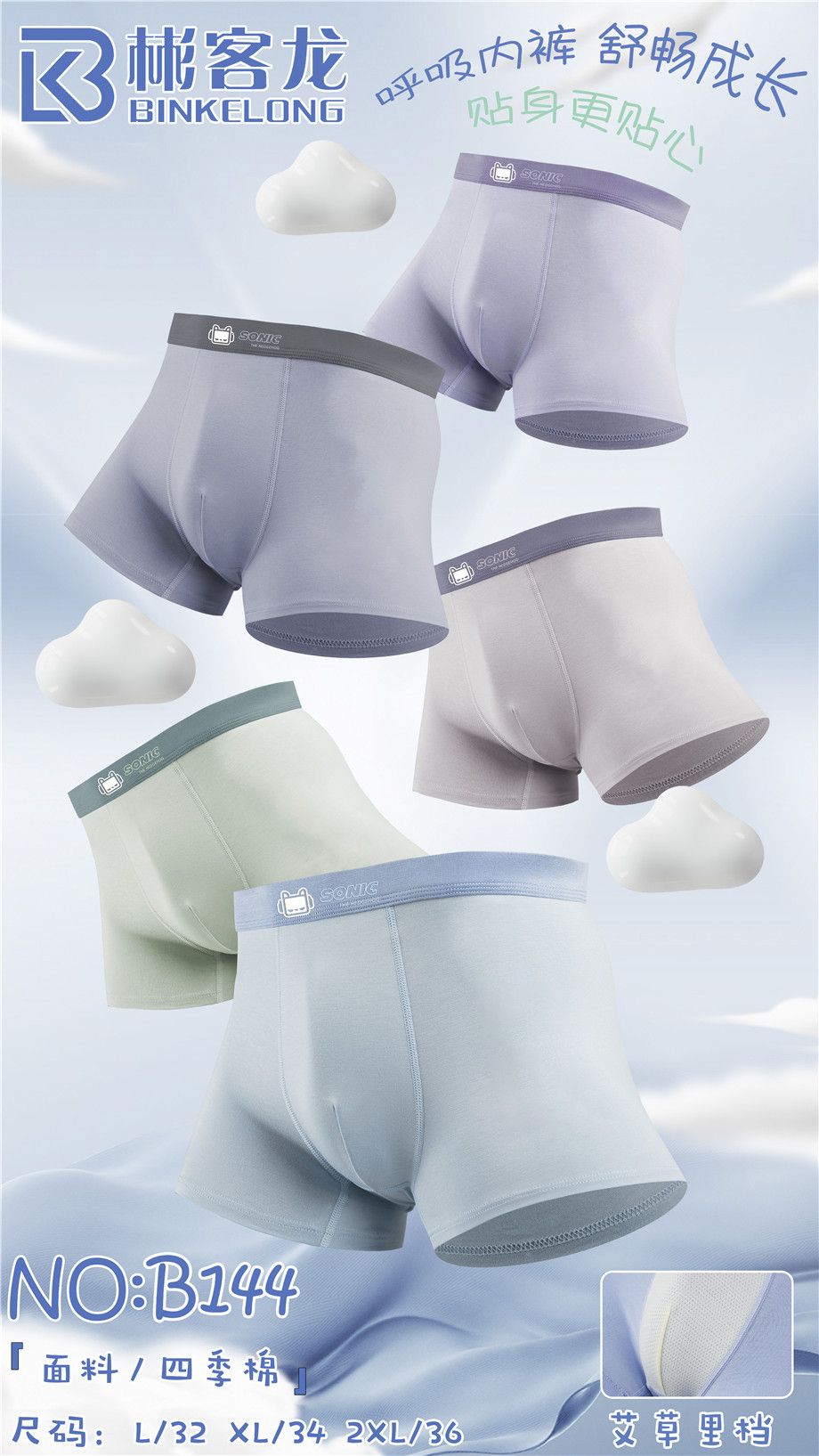 Binkelong B144 남자 미드 웨이스트 솔리드 컬러 통기성 4 시즌 코튼 스킨 친화적 인 마이 카오 크로치 헤드 젊은 남성 속옷 코튼 반바지스토어 가기