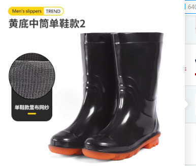 장화, 노동 보호 건설 현장, 남성용 PVC 장화, 미끄럼 방지 내마모성 고무 신발, 워터 슈즈, 두꺼운 힘줄 도매 중간 튜브스토어 가기