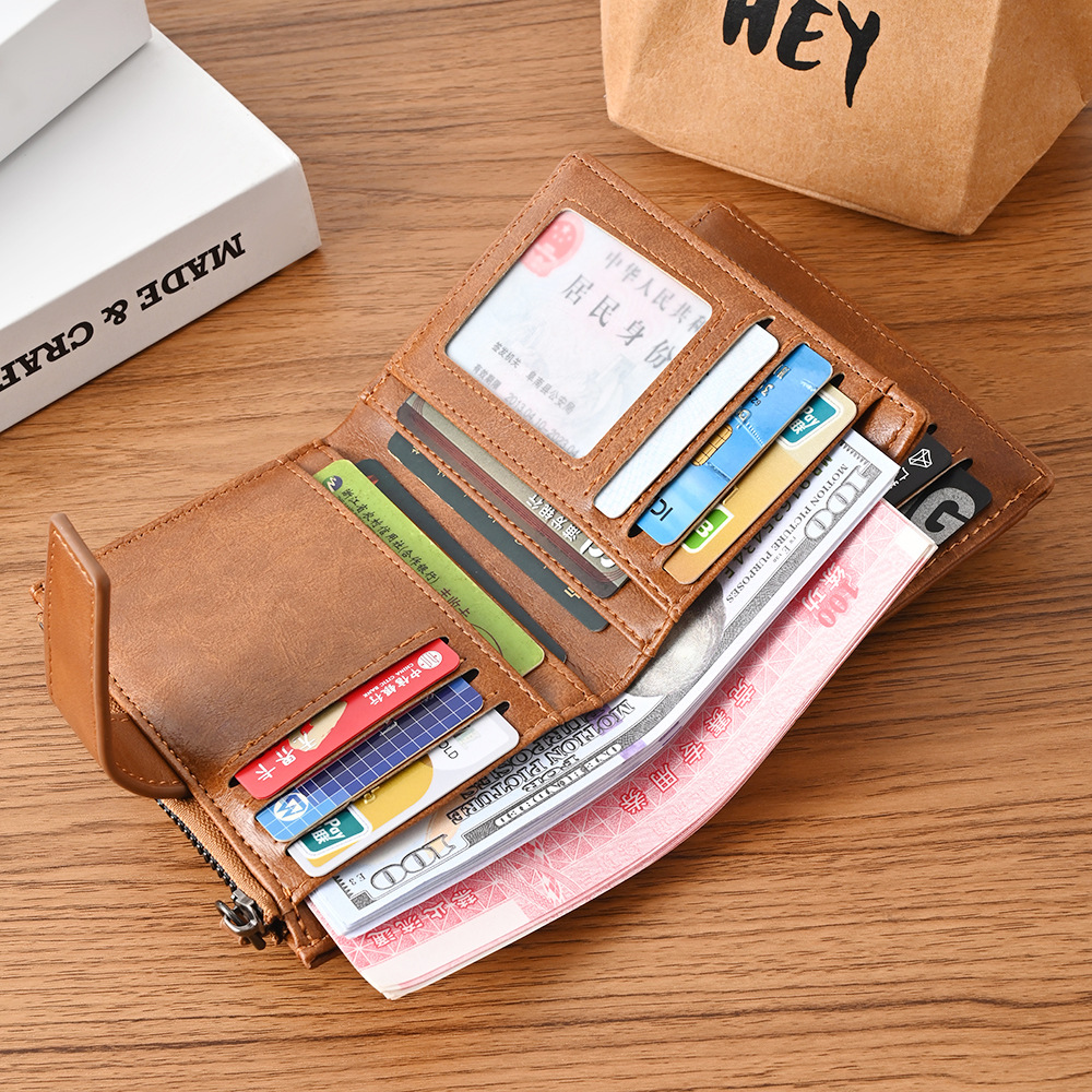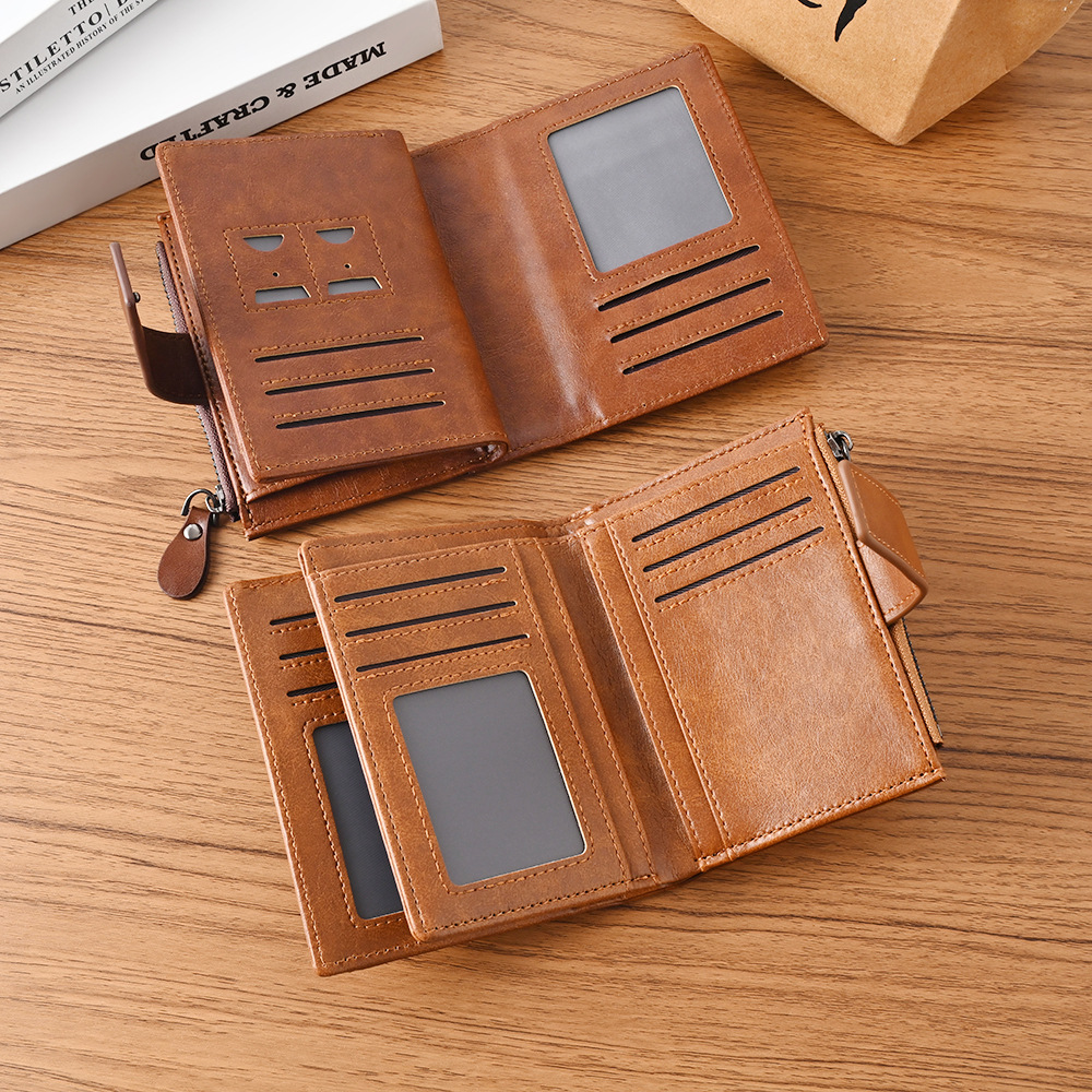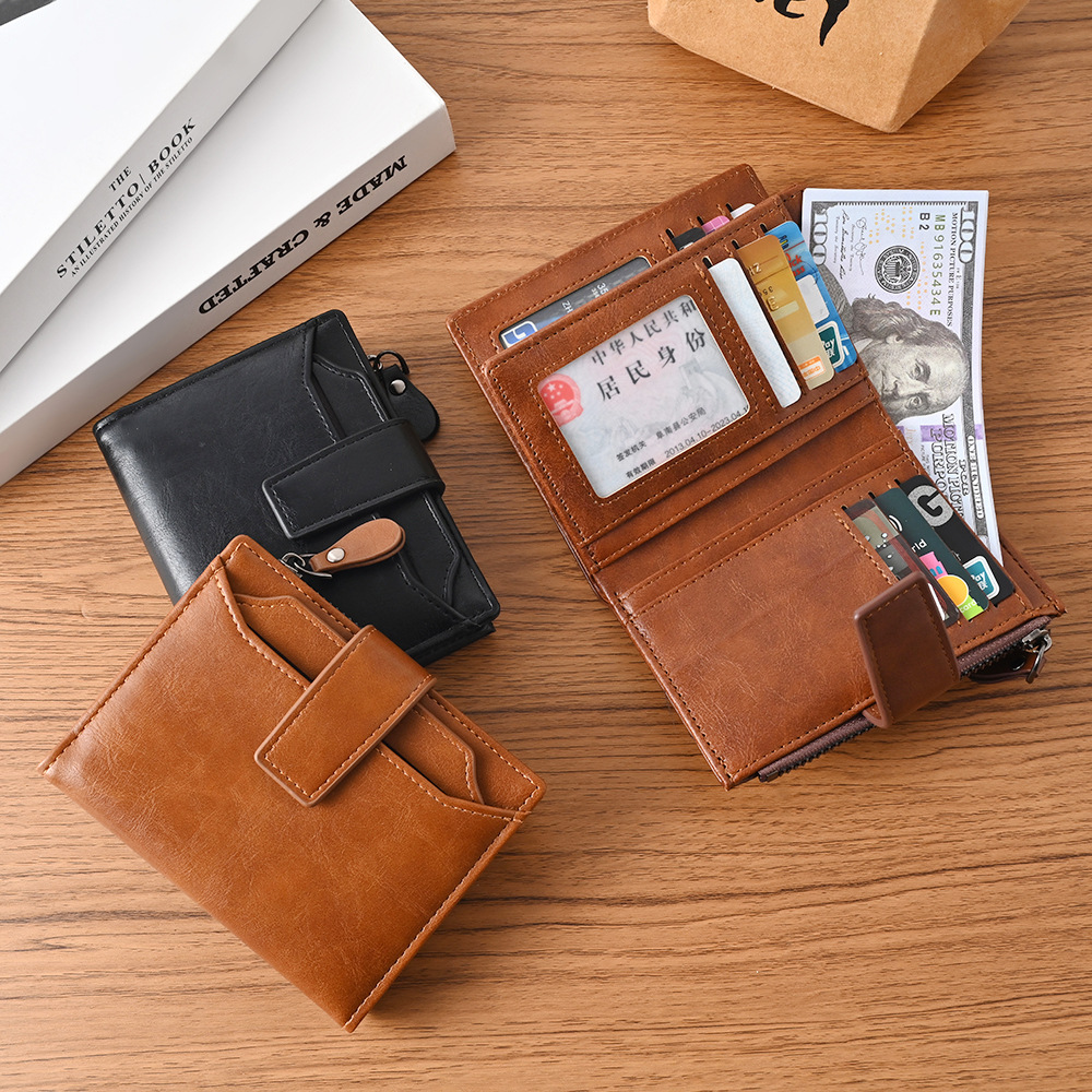 대외 무역 남성 지갑 도난 방지 자기 오일 왁스 PU 가죽 지퍼 지갑 명함 가방 남성 지갑스토어 가기