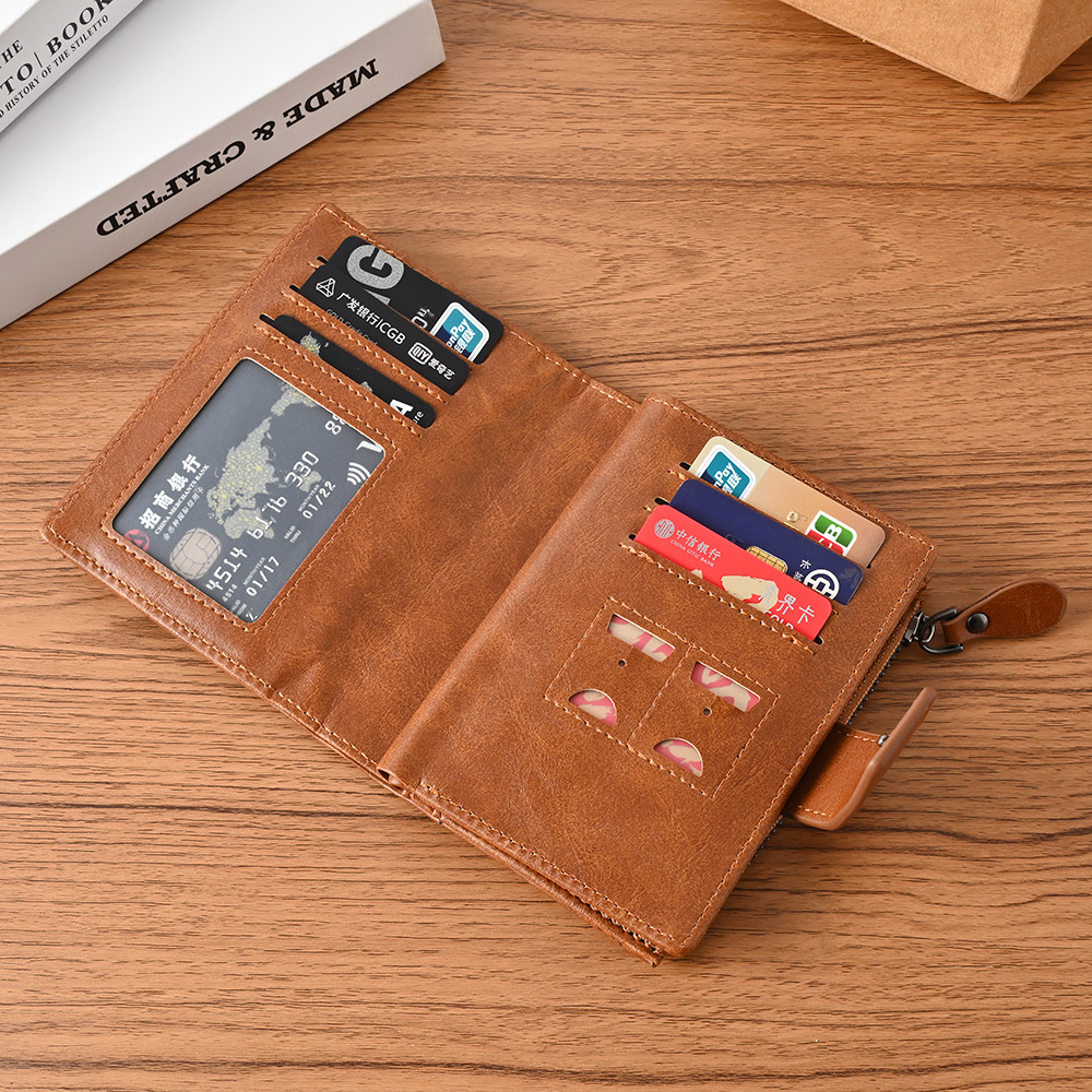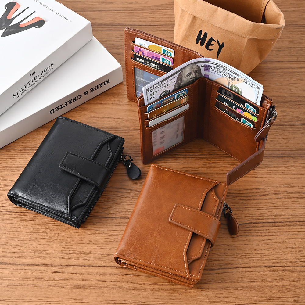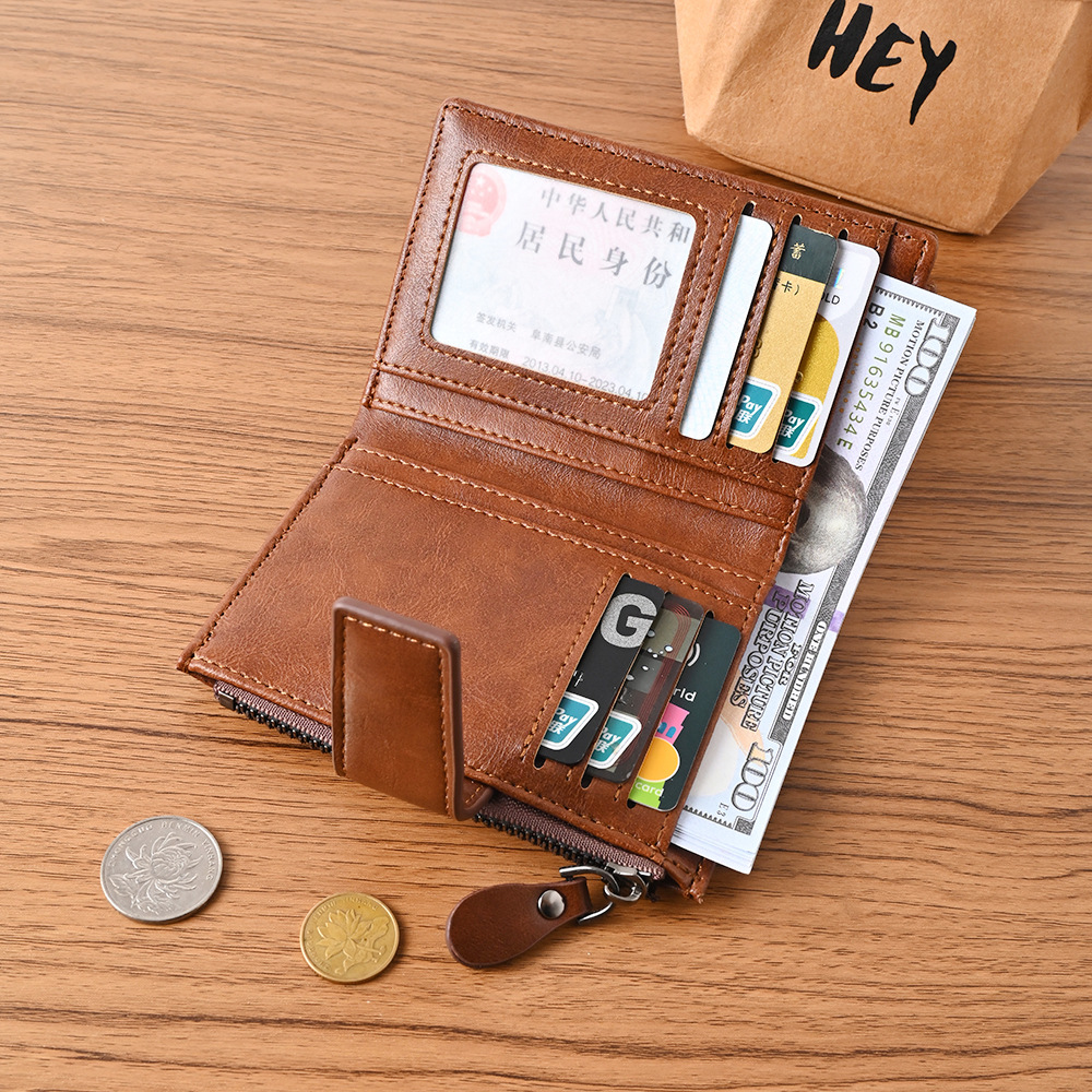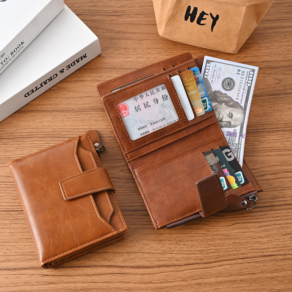 대외 무역 남성 지갑 도난 방지 자기 오일 왁스 PU 가죽 지퍼 지갑 명함 가방 남성 지갑