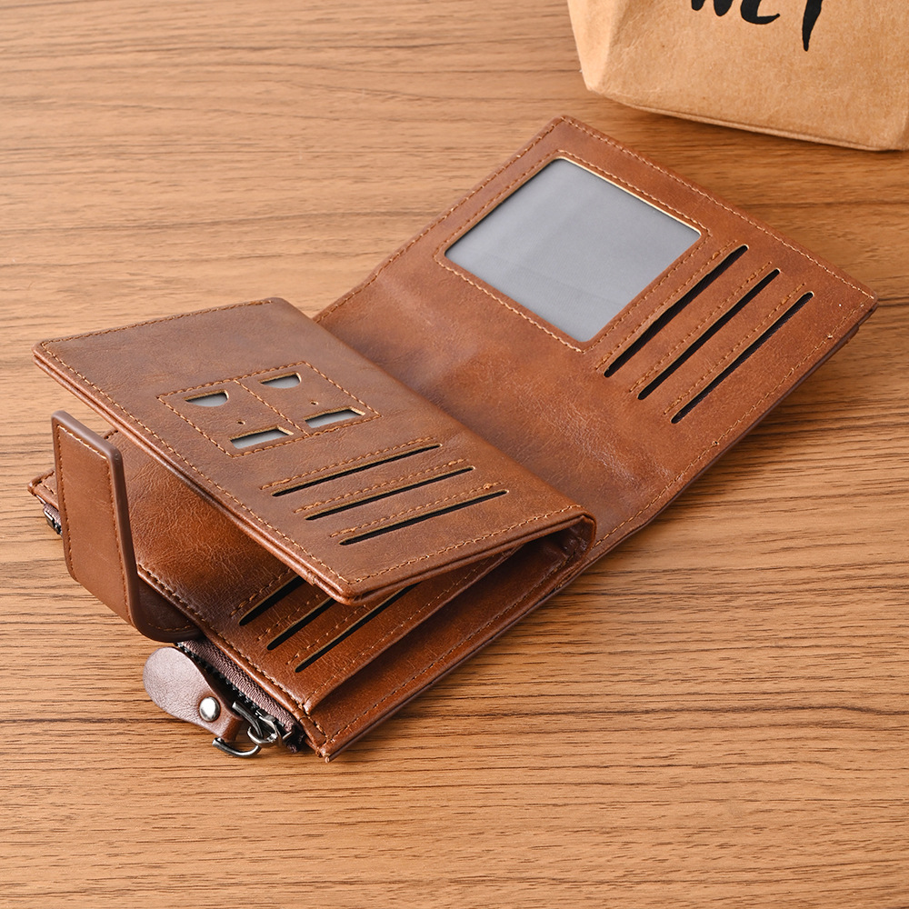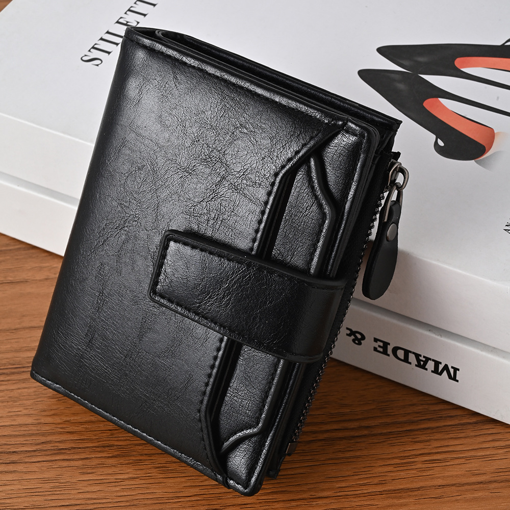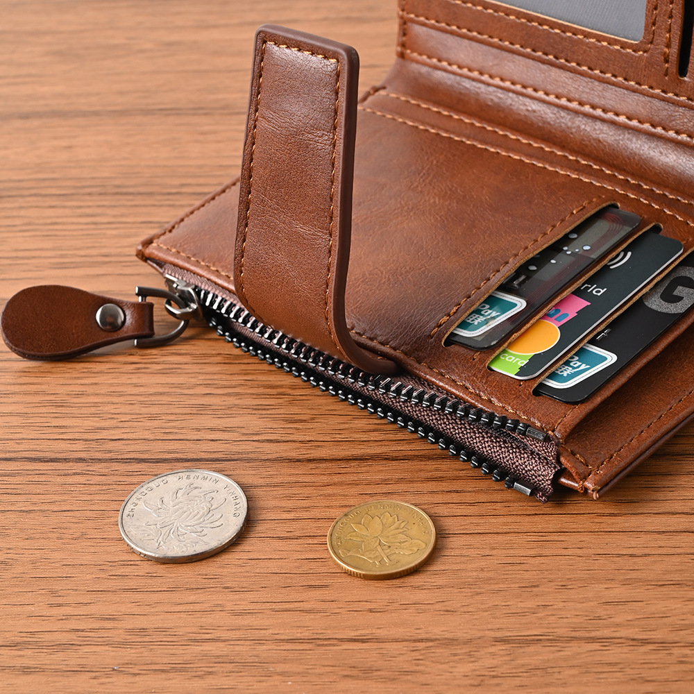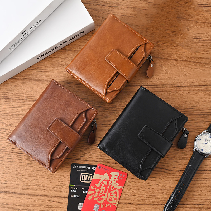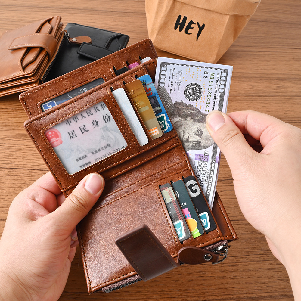 대외 무역 남성 지갑 도난 방지 자기 오일 왁스 PU 가죽 지퍼 지갑 명함 가방 남성 지갑