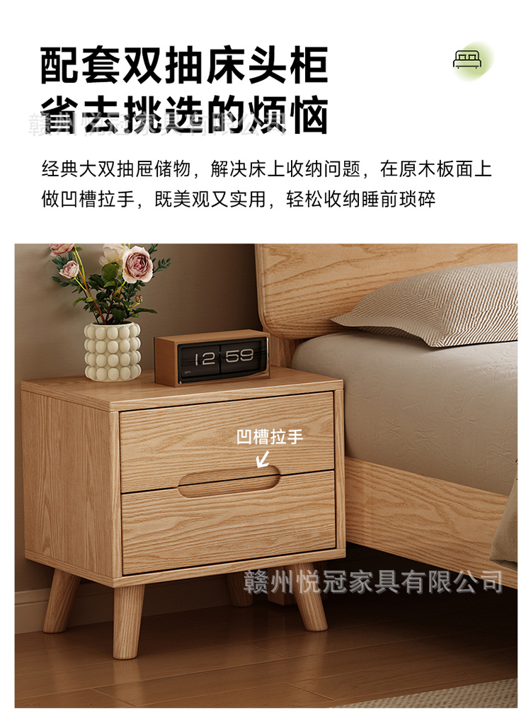 • 물푸레나무 침대*1+침대 옆 탁자*1 [더브테일 장붓구멍이 있는 풀 침대]