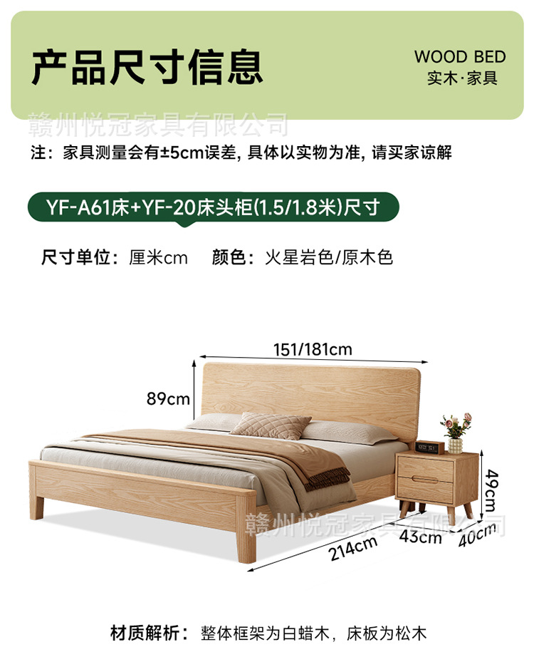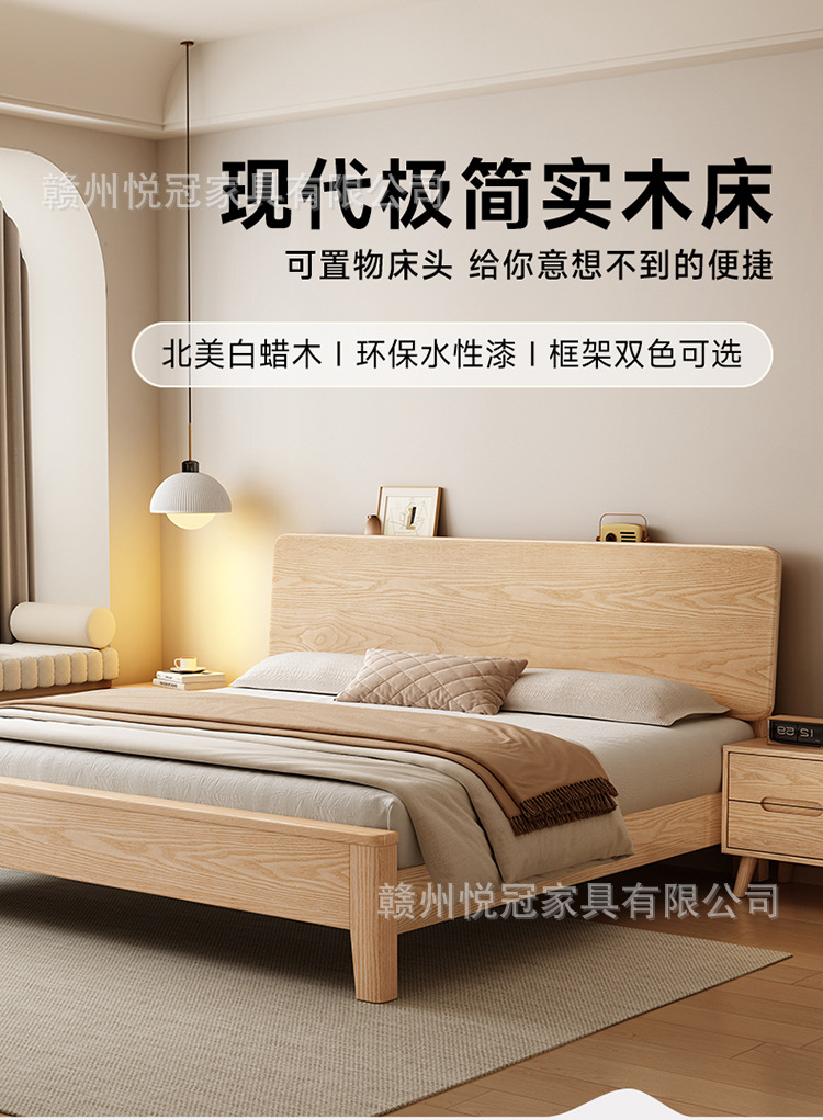 화이트 애쉬 원목 침대 모던 심플 1.8m 더블 침대 마스터룸 1.5m 민슈쿠 임대실 북유럽 원목 침대