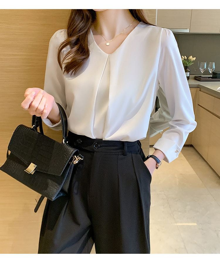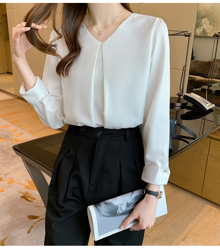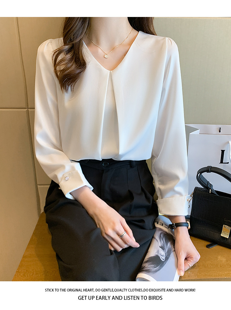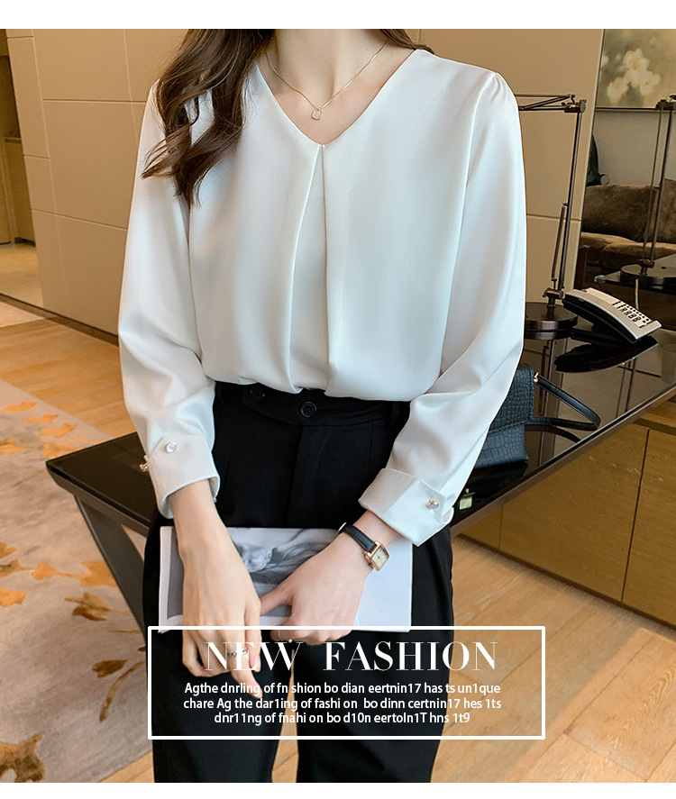 2025 새로운 가을 복고풍 풀오버 긴팔 솔리드 컬러 셔츠 여성용 정장 칼라 주름 방지, 다림질 없음, 단순한 기질