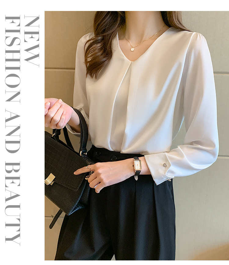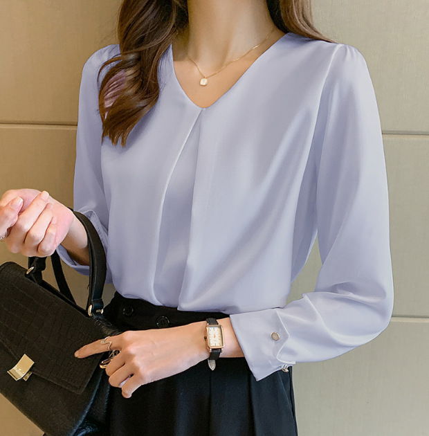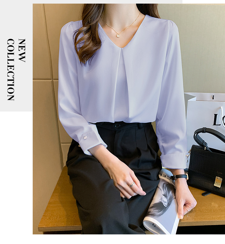 2025 새로운 가을 복고풍 풀오버 긴팔 솔리드 컬러 셔츠 여성용 정장 칼라 주름 방지, 다림질 없음, 단순한 기질스토어 가기
