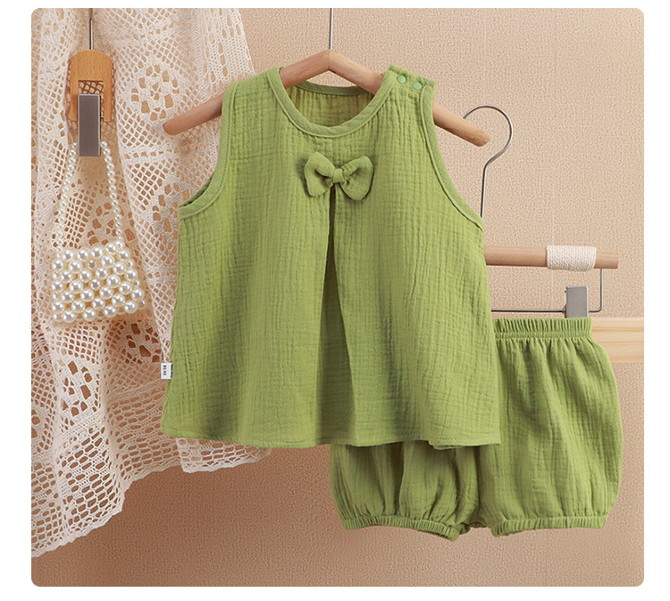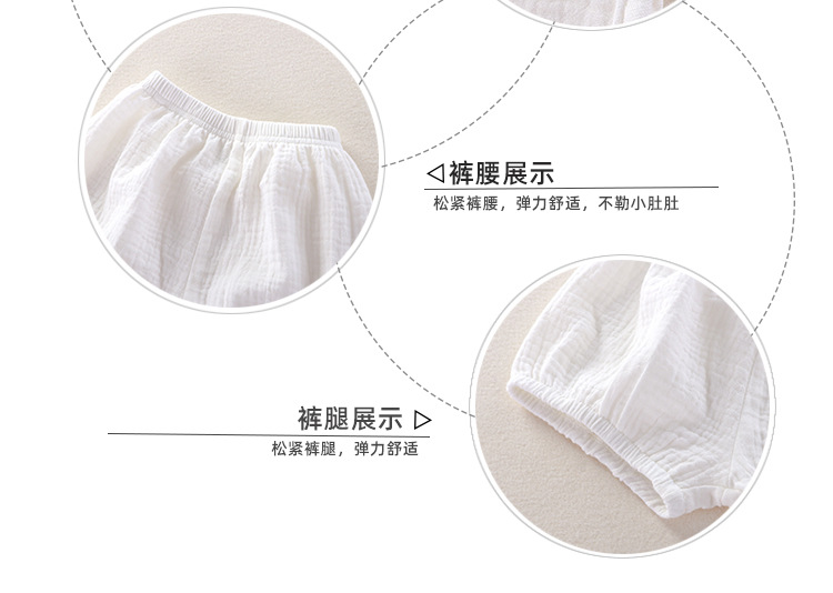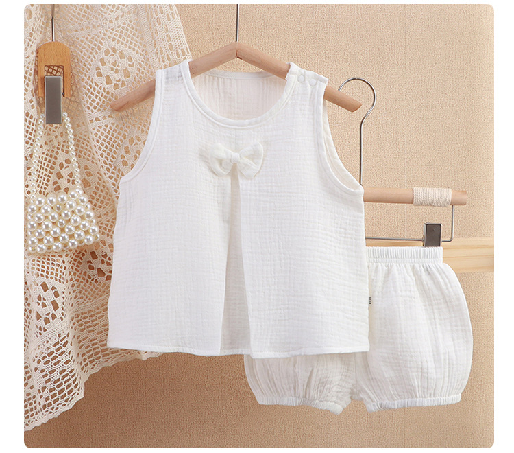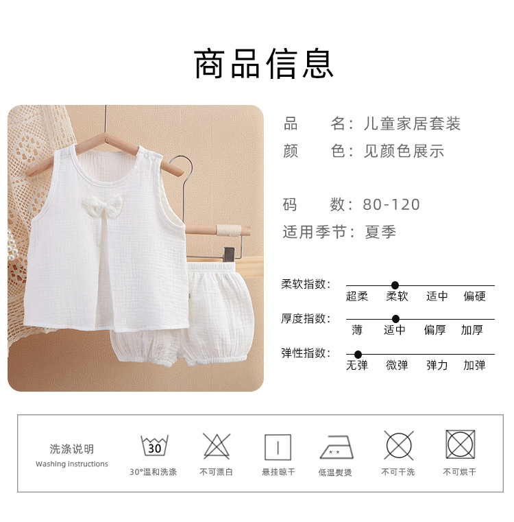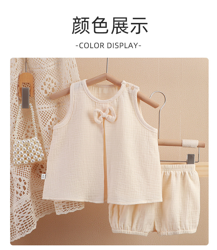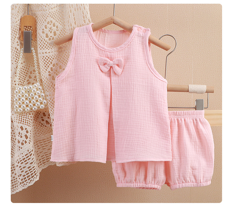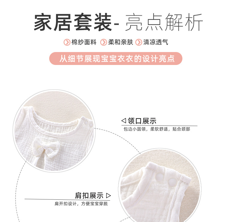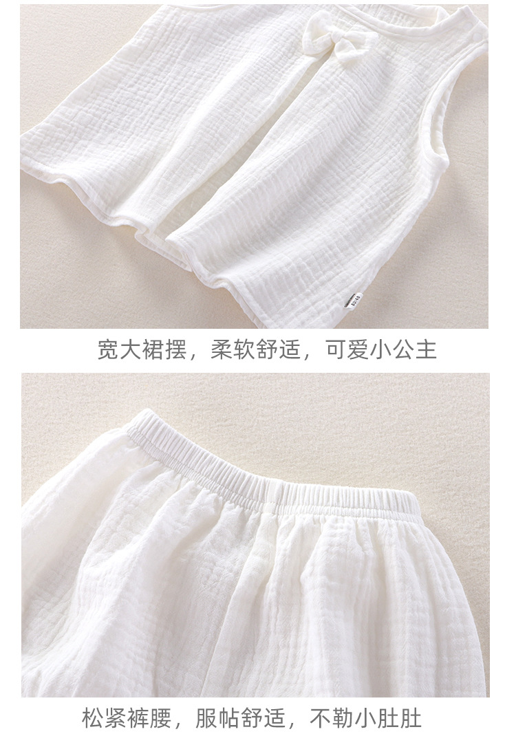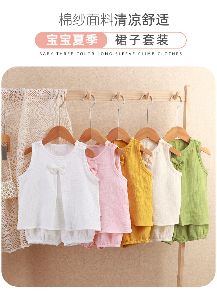 아기 소녀의 거즈 원피스 봄 및 여름 새로운 솔리드 컬러 더블 레이어 원사 통기성 편안한 소녀의 활 홈 세트