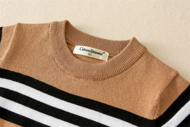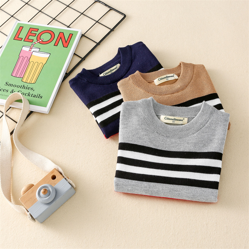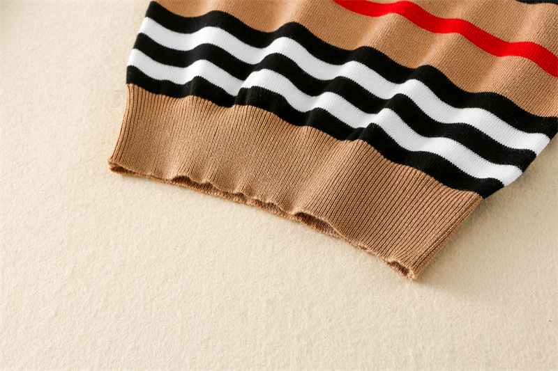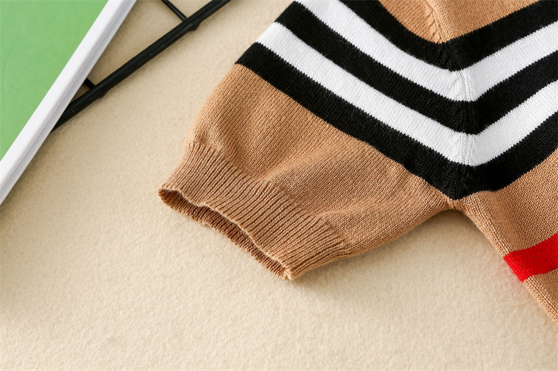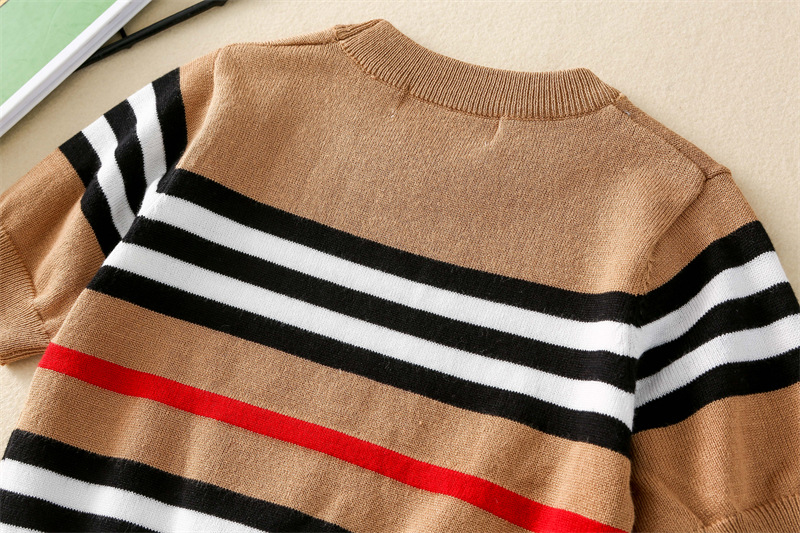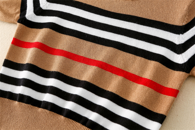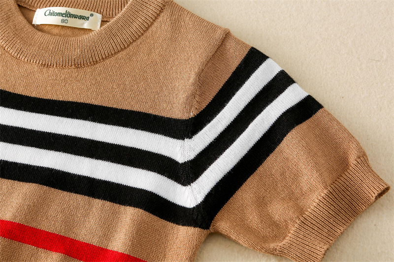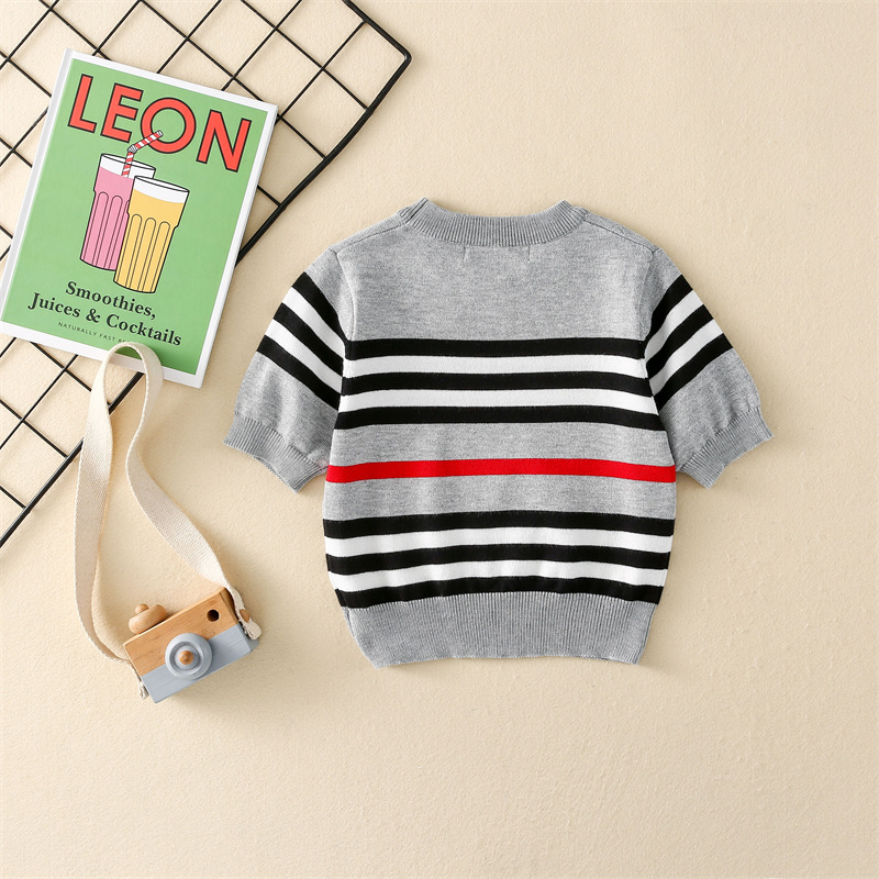 시의원 새 여름 반팔 니트웨어 어린이 크루 넥 스트라이프 풀오버 패셔블 올매치 베이스 셔츠