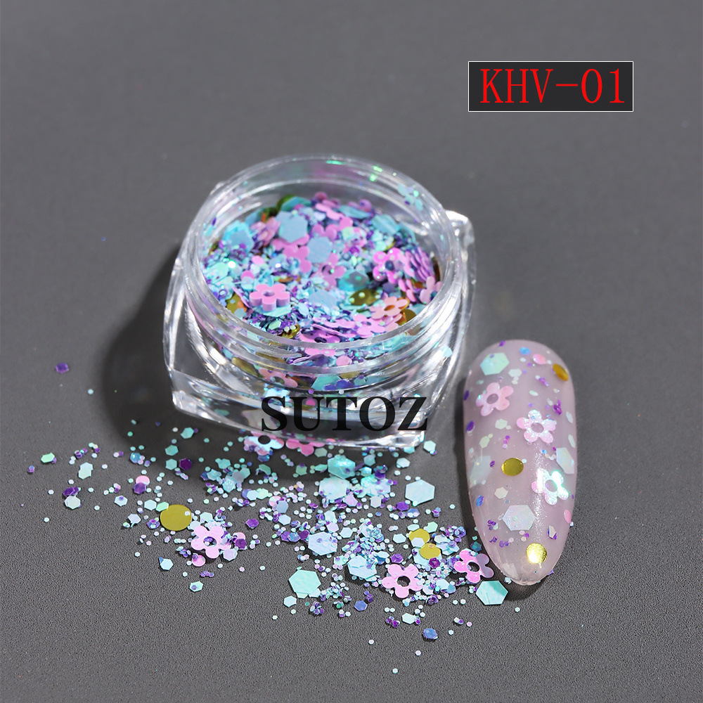 2024 국경을 넘는 새로운 네일 아트 스팽글 봄과 여름 꿈 플래시 꽃 나비 불규칙한 스팽글 네일 장식
