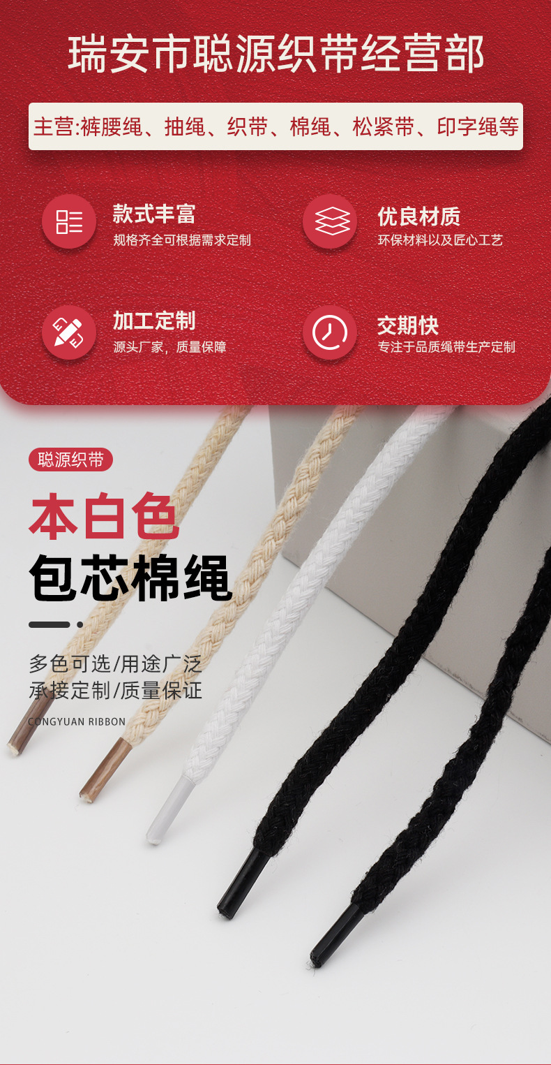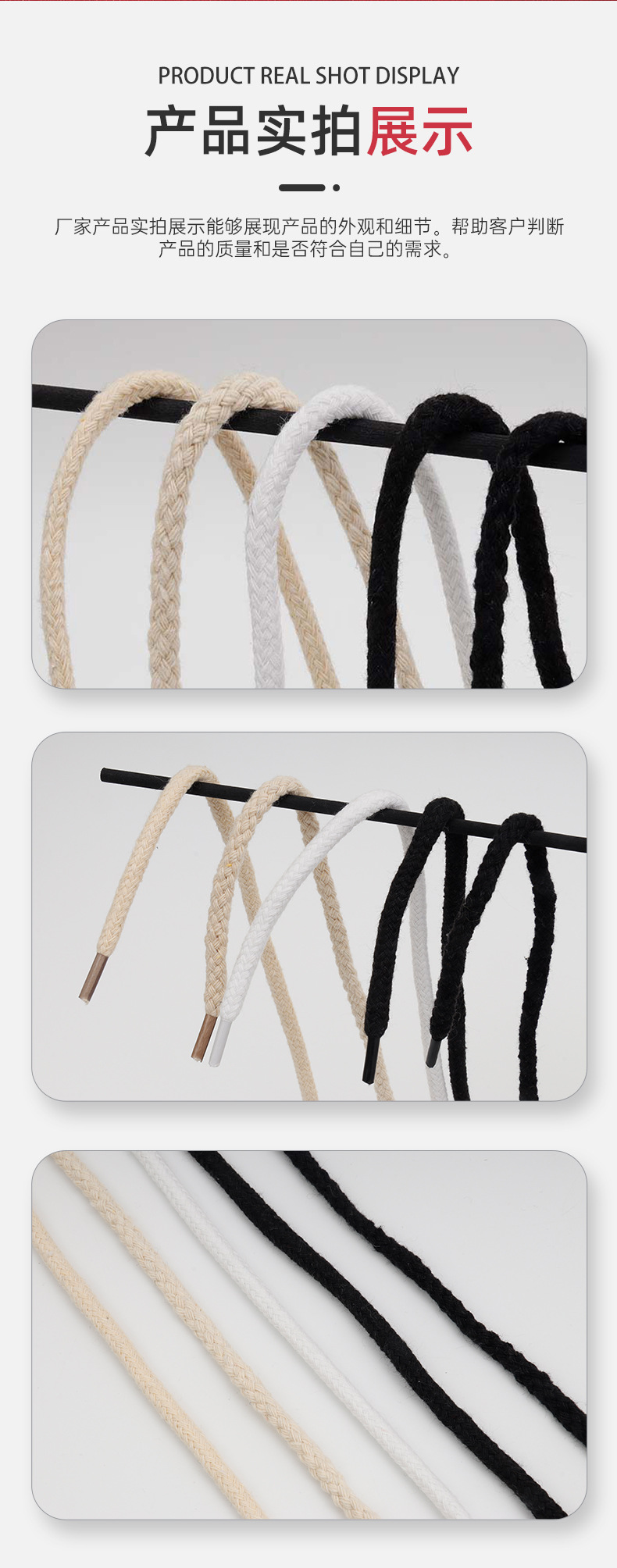 공장 공급 면 밧줄이 흰색면 코어 스핀 로프 신발 끈 묶은 짠 태피스트리 라운드 배관 상감 로프 사용자 정의스토어 가기