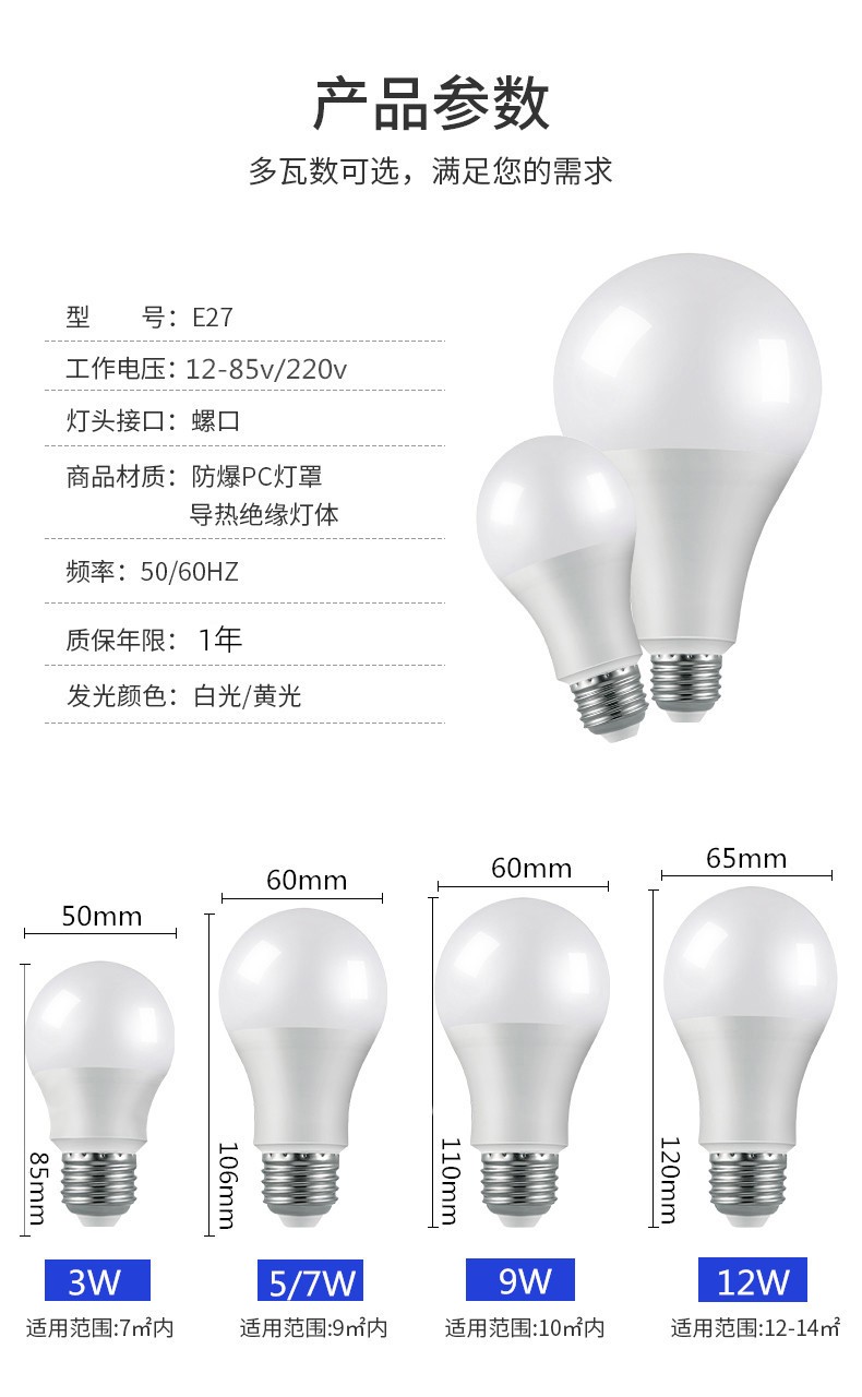 ♡ 저전압 DC 12V24V36V AC LED 전구 e27 나사 방수 배터리 공작 기계 해양 섹션