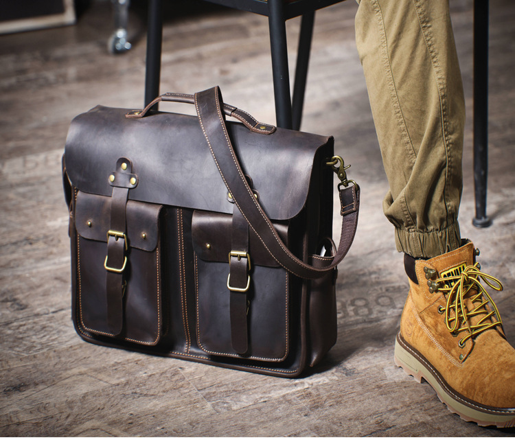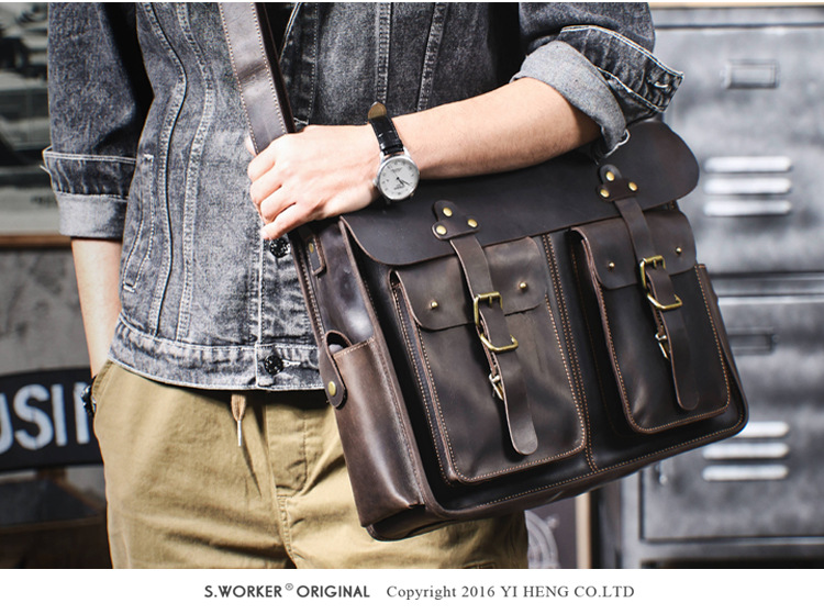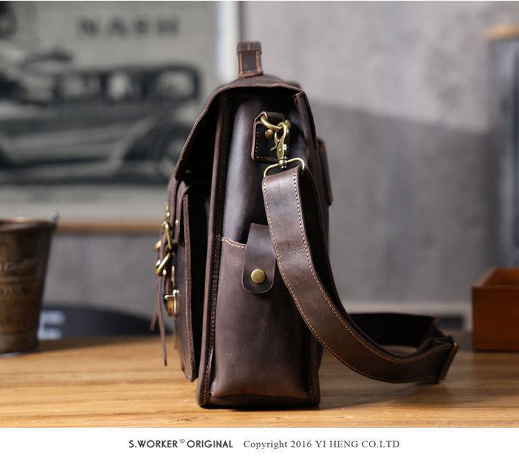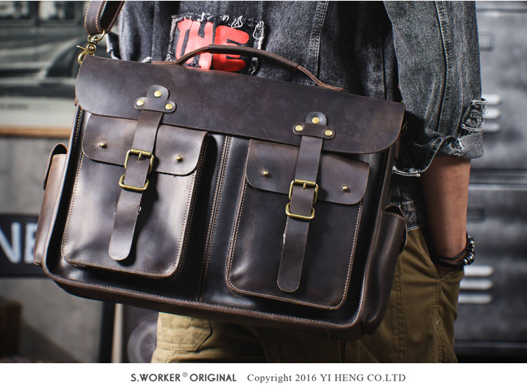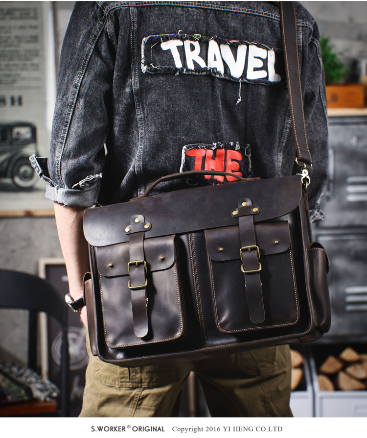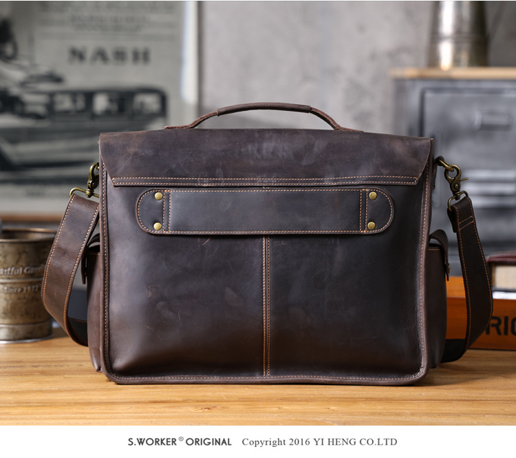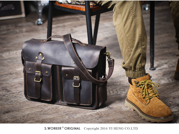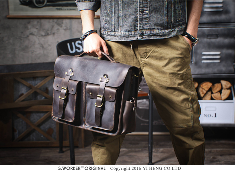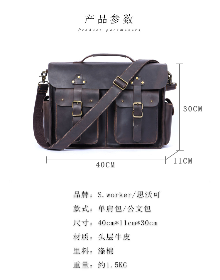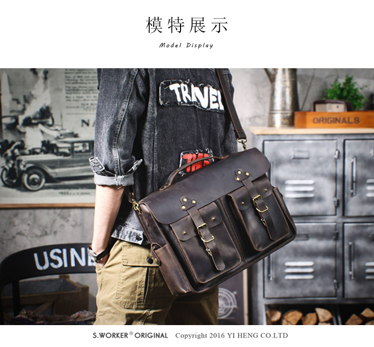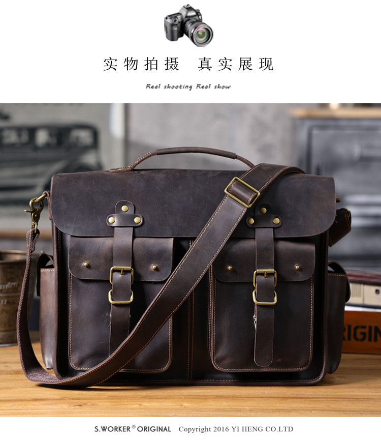 빈티지 탑 레이어 Cowhide 핸드백 남성용 미친 말 가죽 서류 가방 정품 가죽 컴퓨터 가방 Cowhide 남성용 메신저 백스토어 가기