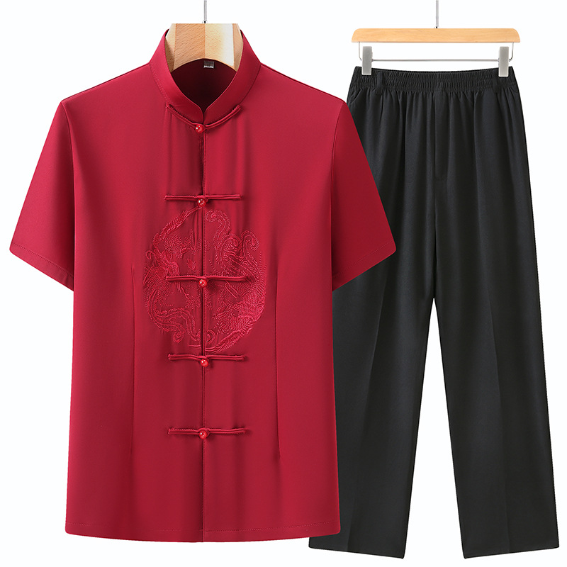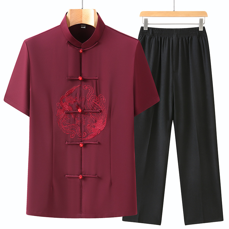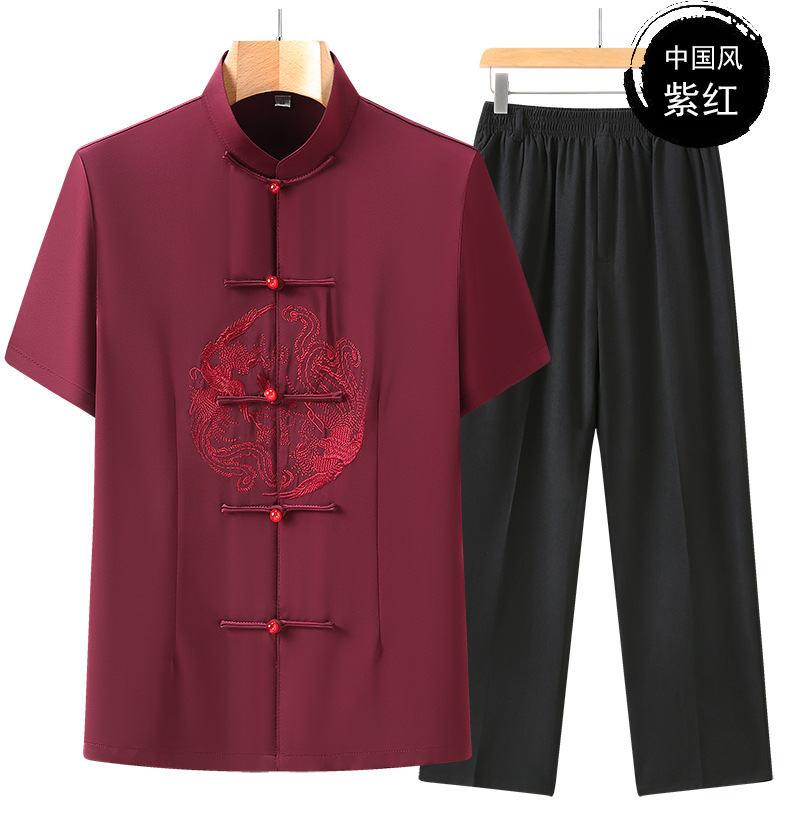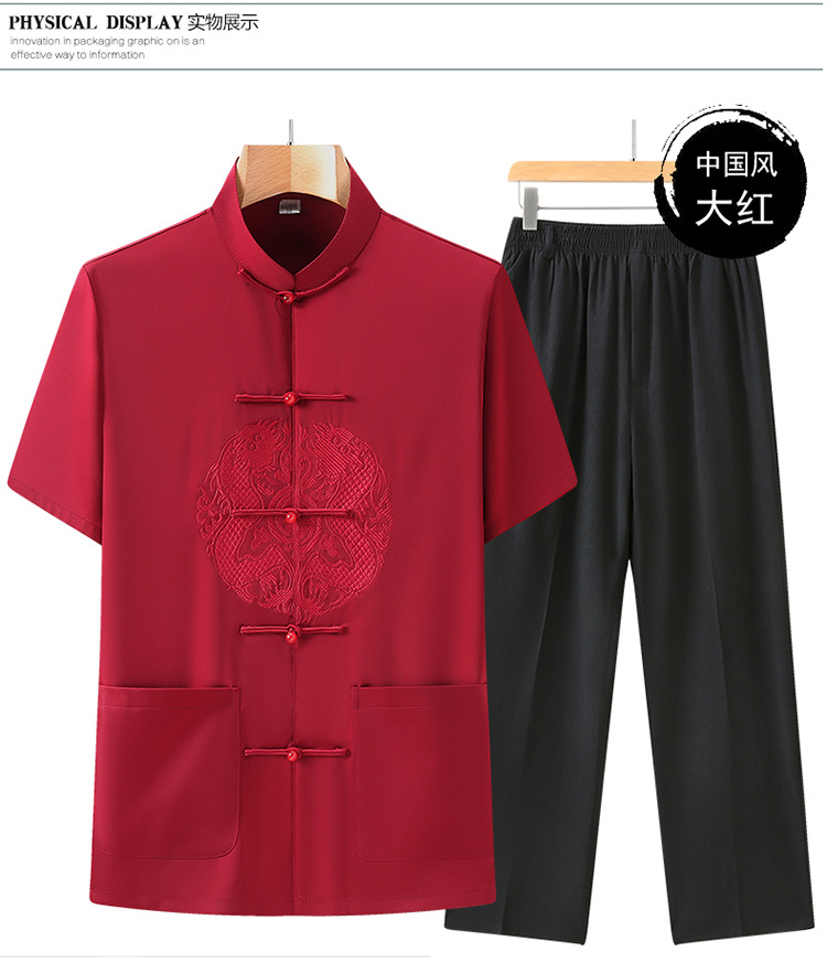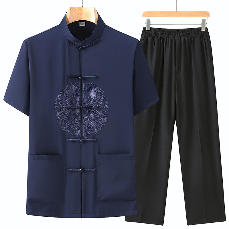 탕 세트 남성 중년 및 노인 반팔 세트 할아버지와 할머니 커플 세트 중국 스타일 노인 생일 결혼식 아빠 여름 세트