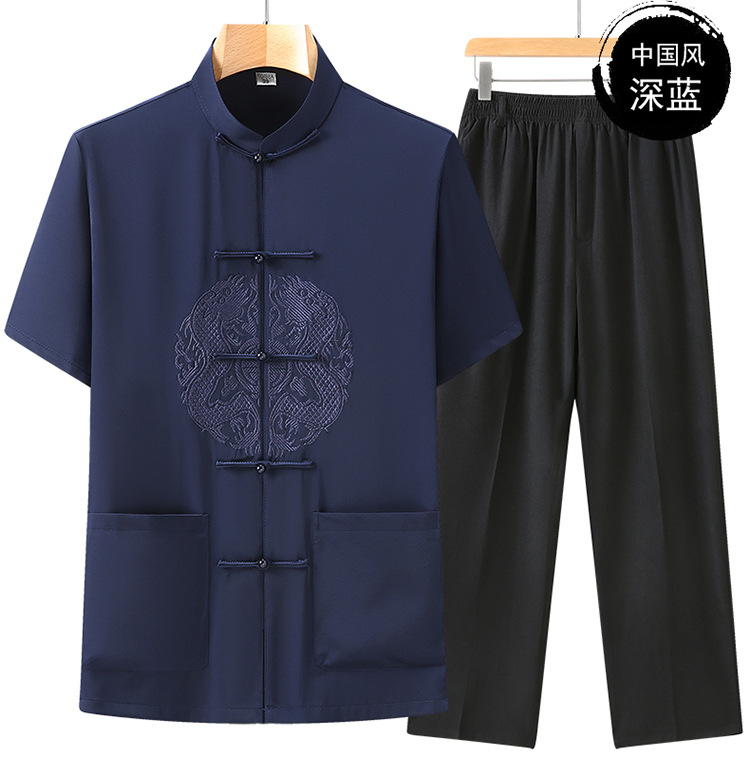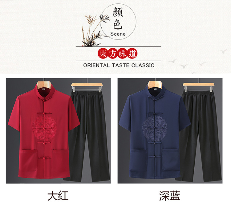 탕 세트 남성 중년 및 노인 반팔 세트 할아버지와 할머니 커플 세트 중국 스타일 노인 생일 결혼식 아빠 여름 세트스토어 가기