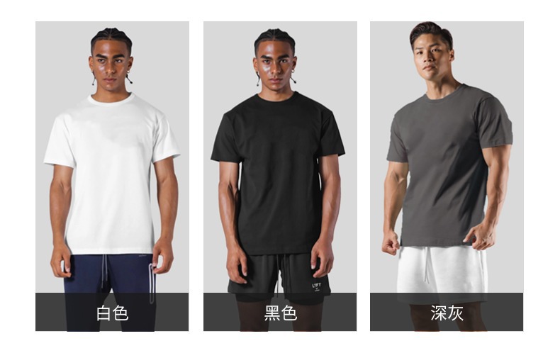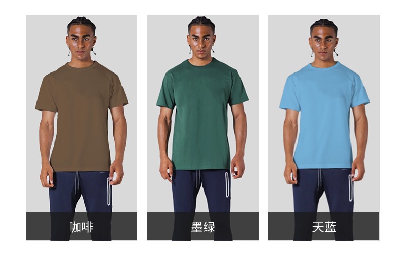 국경 간 유럽과 미국 200G 스포츠 레저 짧은 소매 남성면 통기성 트렌드 커플 단색 라운드 넥 티셔츠 여름스토어 가기