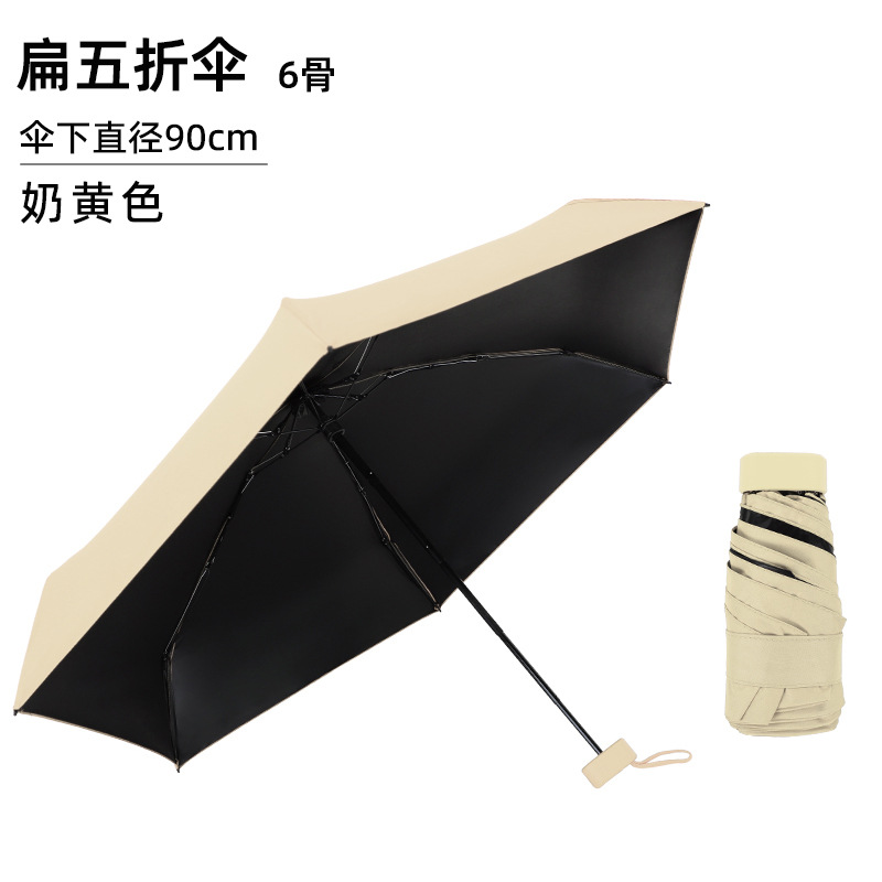 • 베스트 셀러 플랫 5 배 우산 6 뼈-우유 노란색