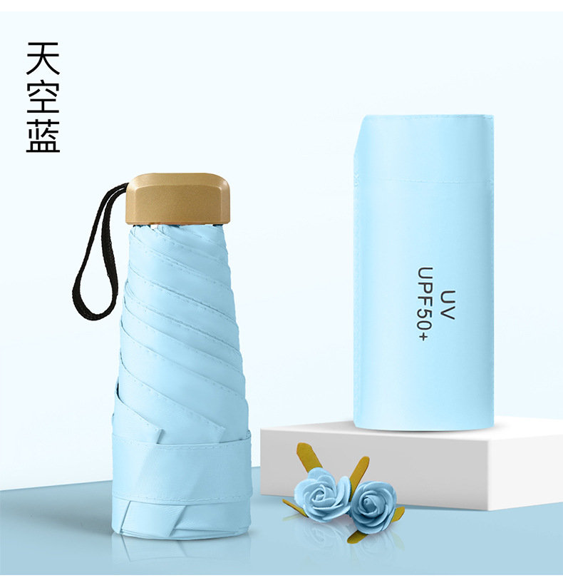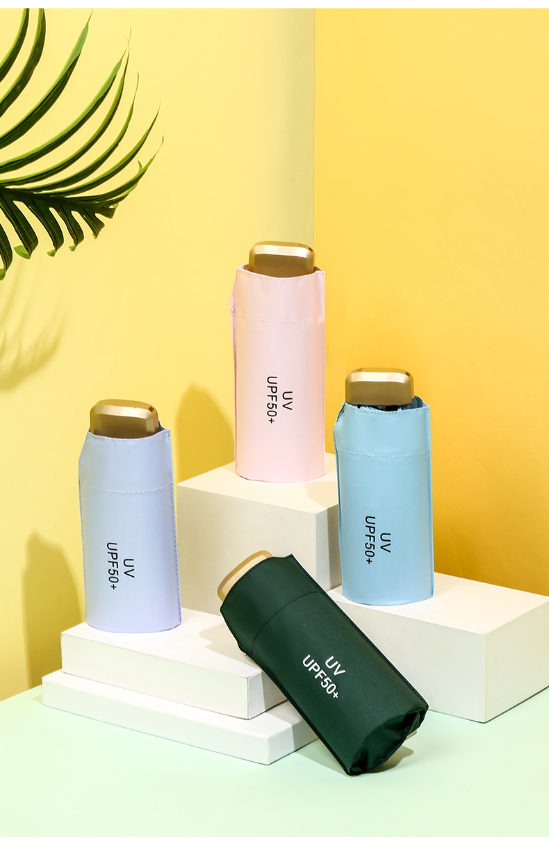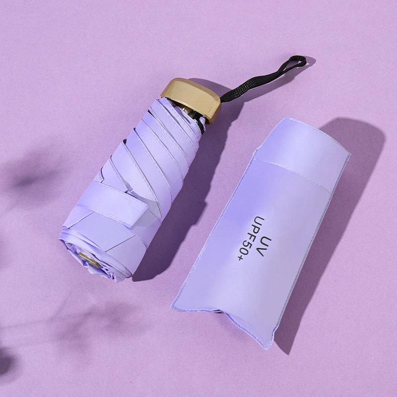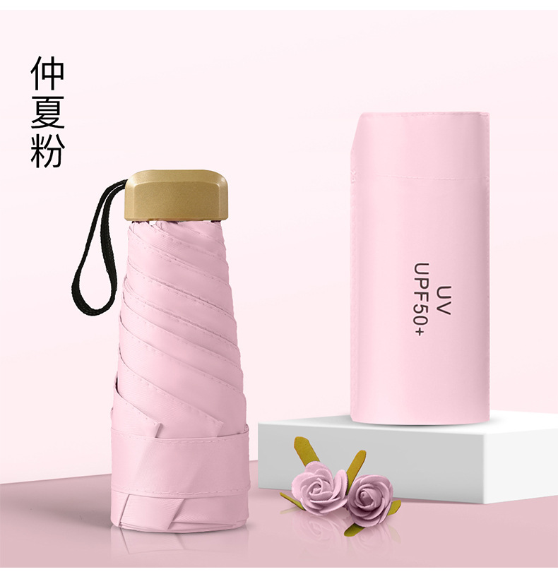 작은 우산 학생 50% 접은 캡슐 우산 햇살 우산 선 스크린 자외선 보호 태양 우산 인쇄 가능한 로고 어린이 우산