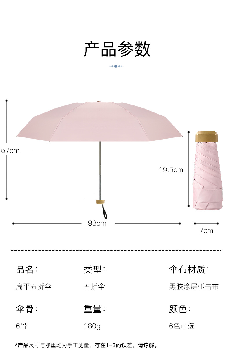 • 베스트셀러 플랫 5 배 우산 6 본 블랙