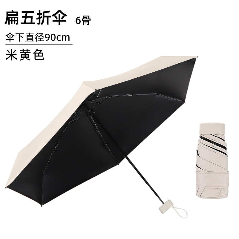 • 베스트 셀러 플랫 5 배 우산 6 뼈-베이지