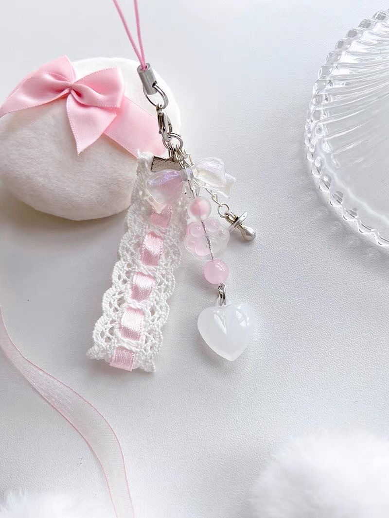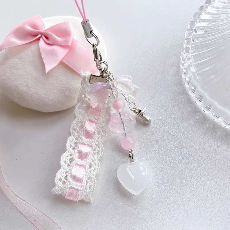 로리타 수제 활 사랑 y2k 귀여운 소녀 구슬 휴대 전화 케이스 체인 카드 책 펜던트 카메라 장식