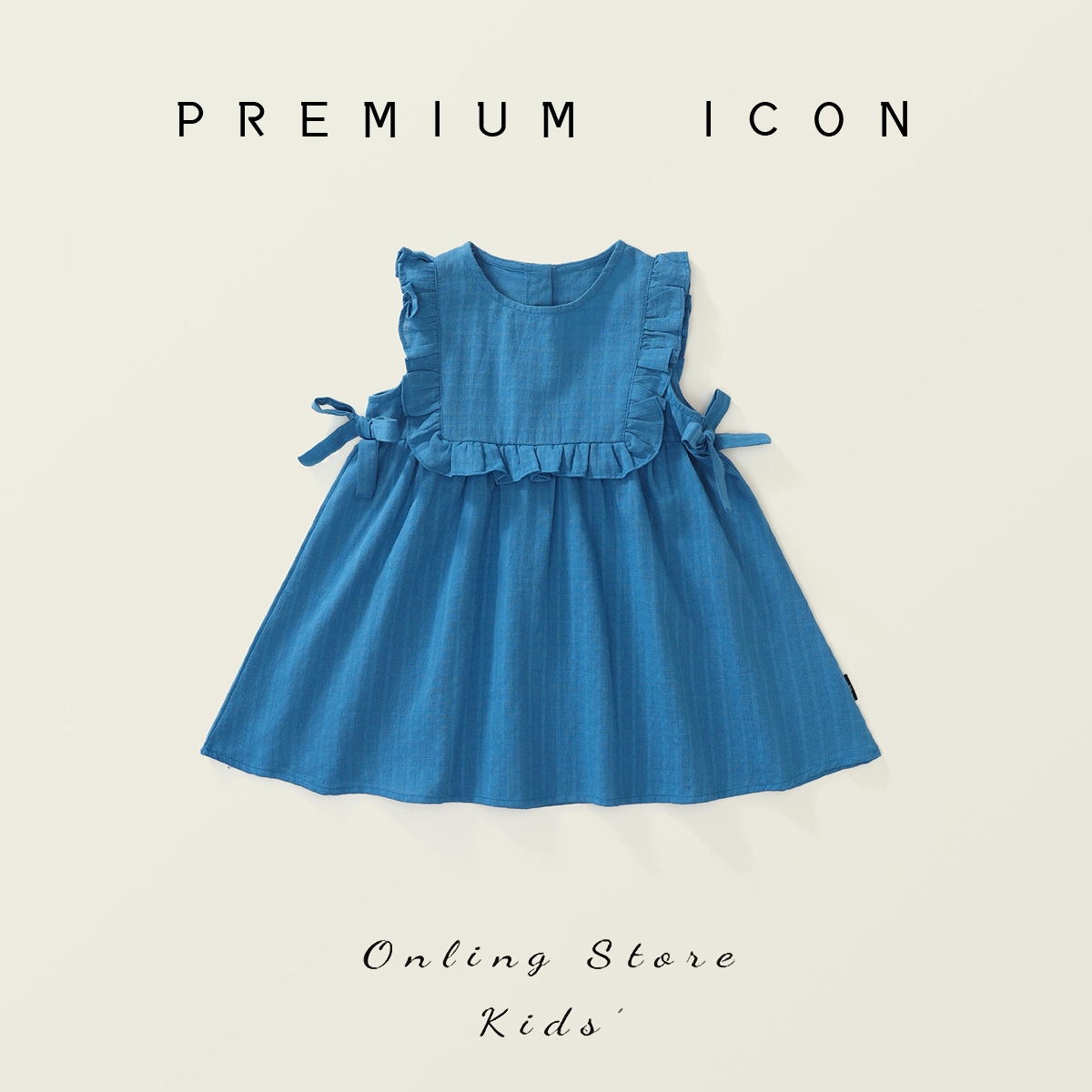 Jella 아동복 소녀 민소매 드레스 2025 여름 새로운 스타일 한국 스타일 레이스 블루 조끼 드레스스토어 가기
