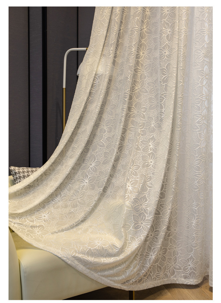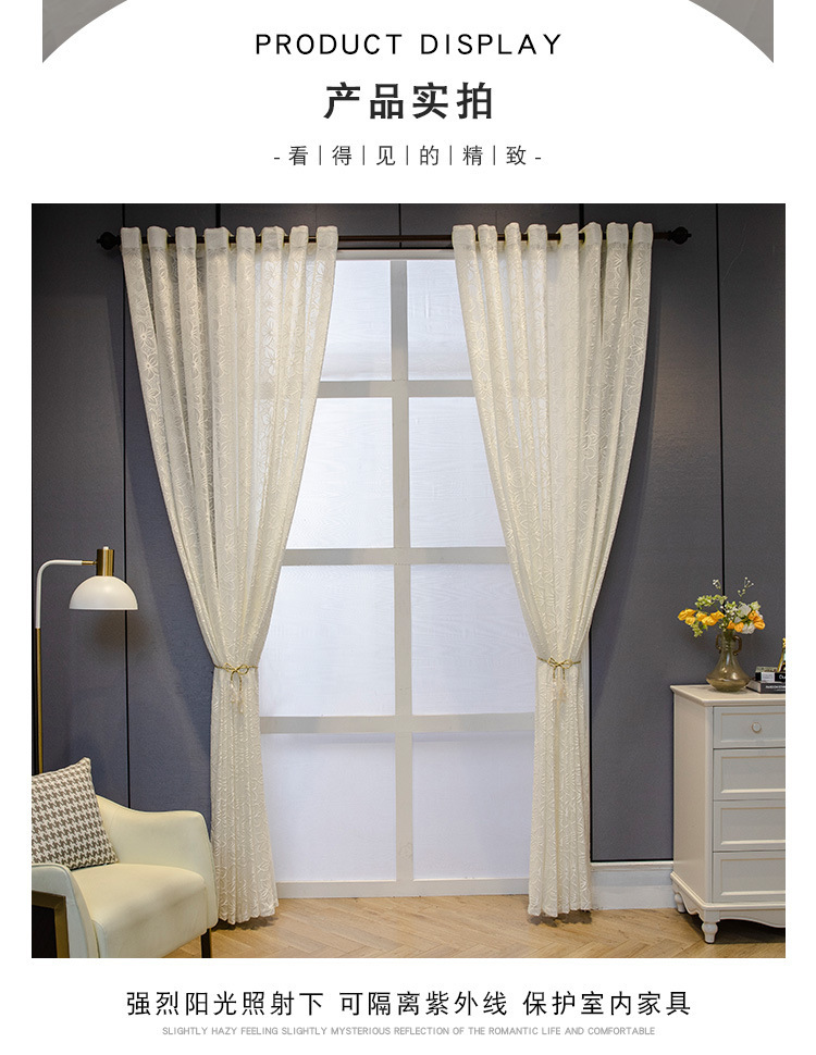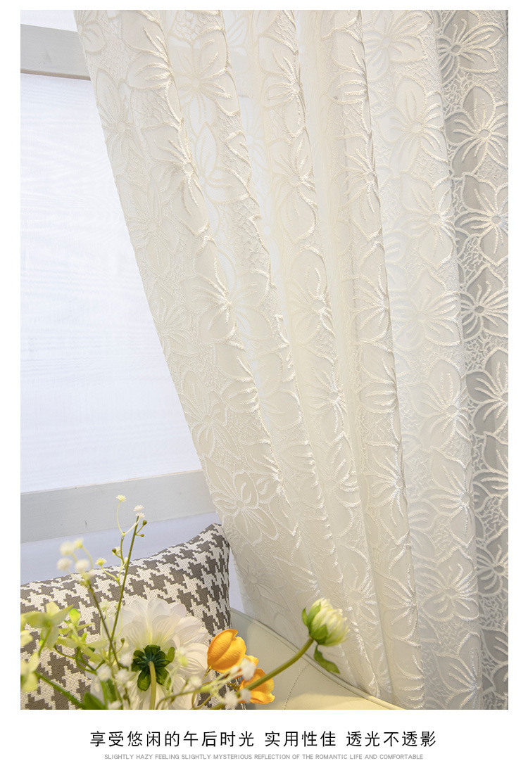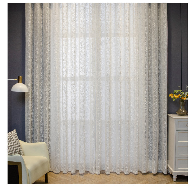 사용자 정의 벚꽃 흰색 화면 창 화면 커튼 양각 화면 커튼 거실 침실 발코니 투명 모든 일치 층 베이 창 화면