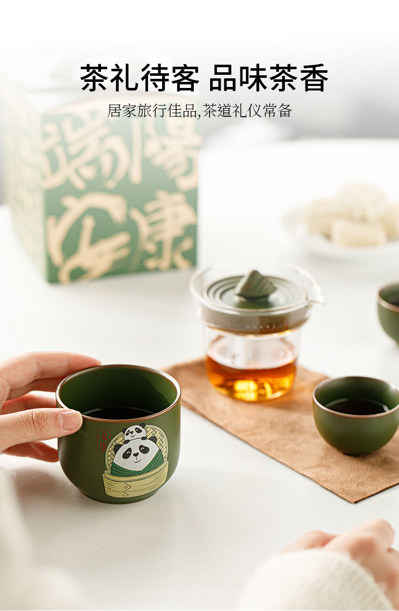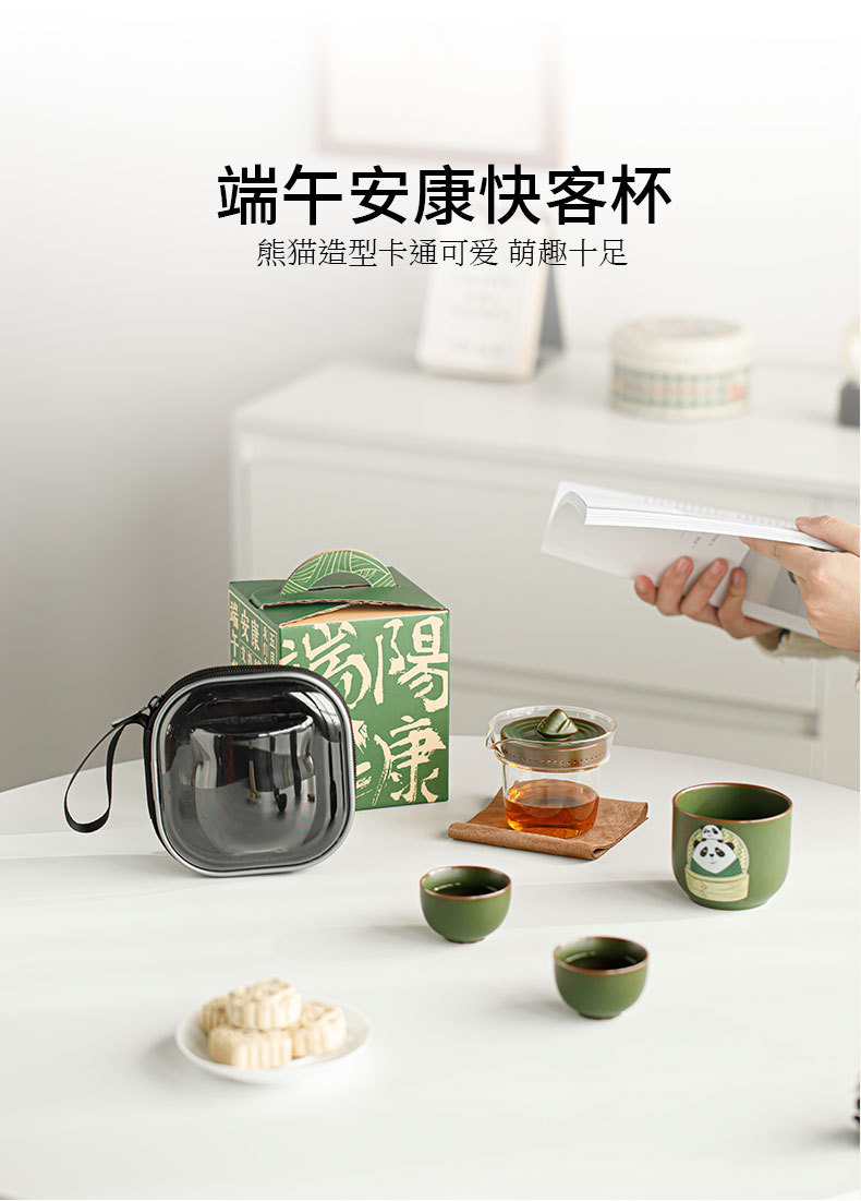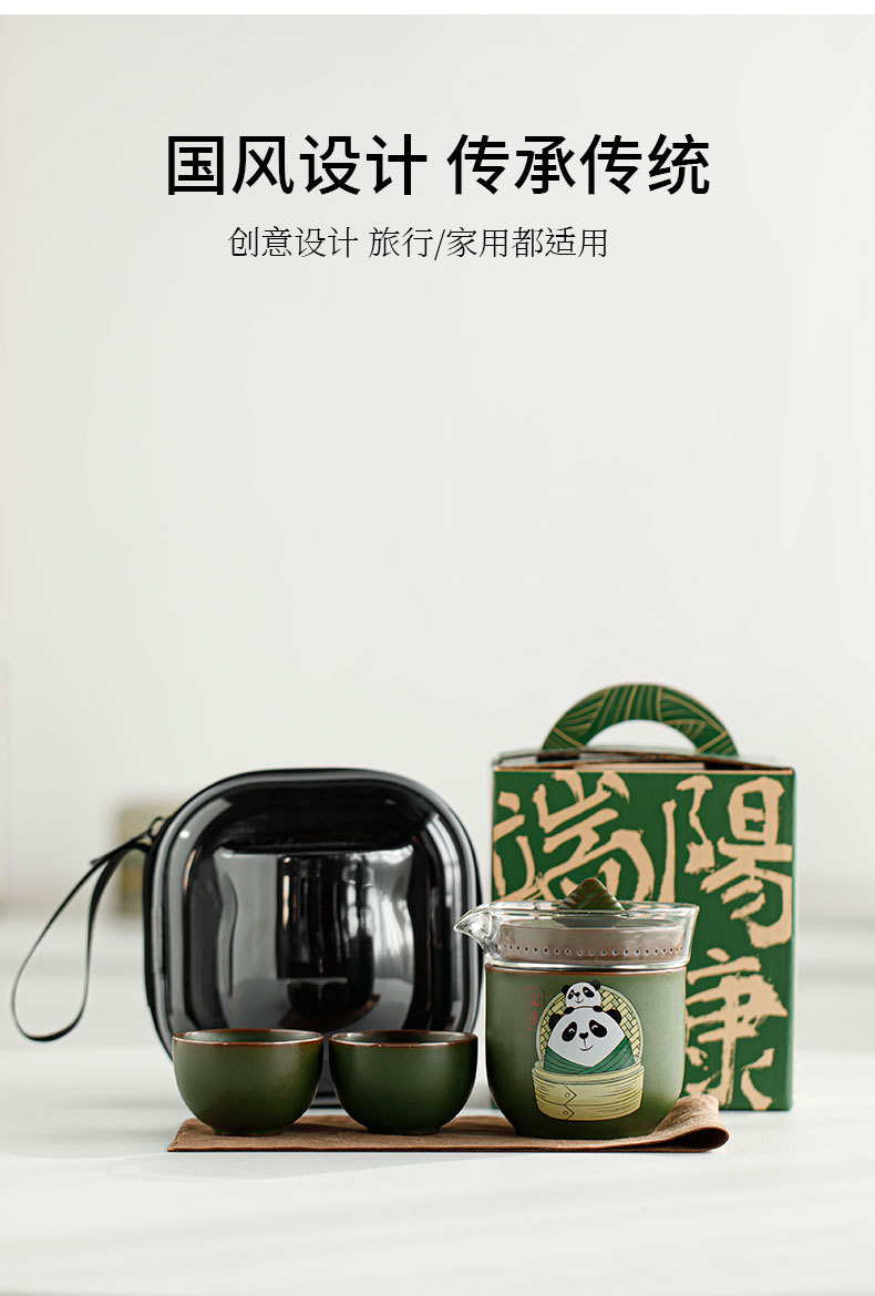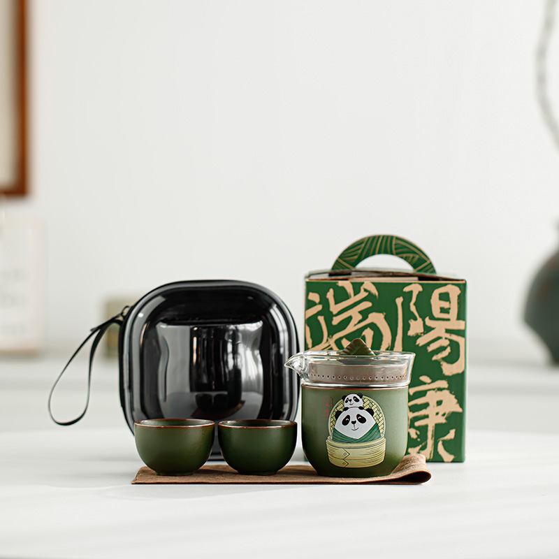 드래곤 보트 축제 팬더 익스프레스 컵 1 포트 3 컵 여행 차 세트 휴대용 가방 쿵푸 티 세트 동반 행사 로고스토어 가기