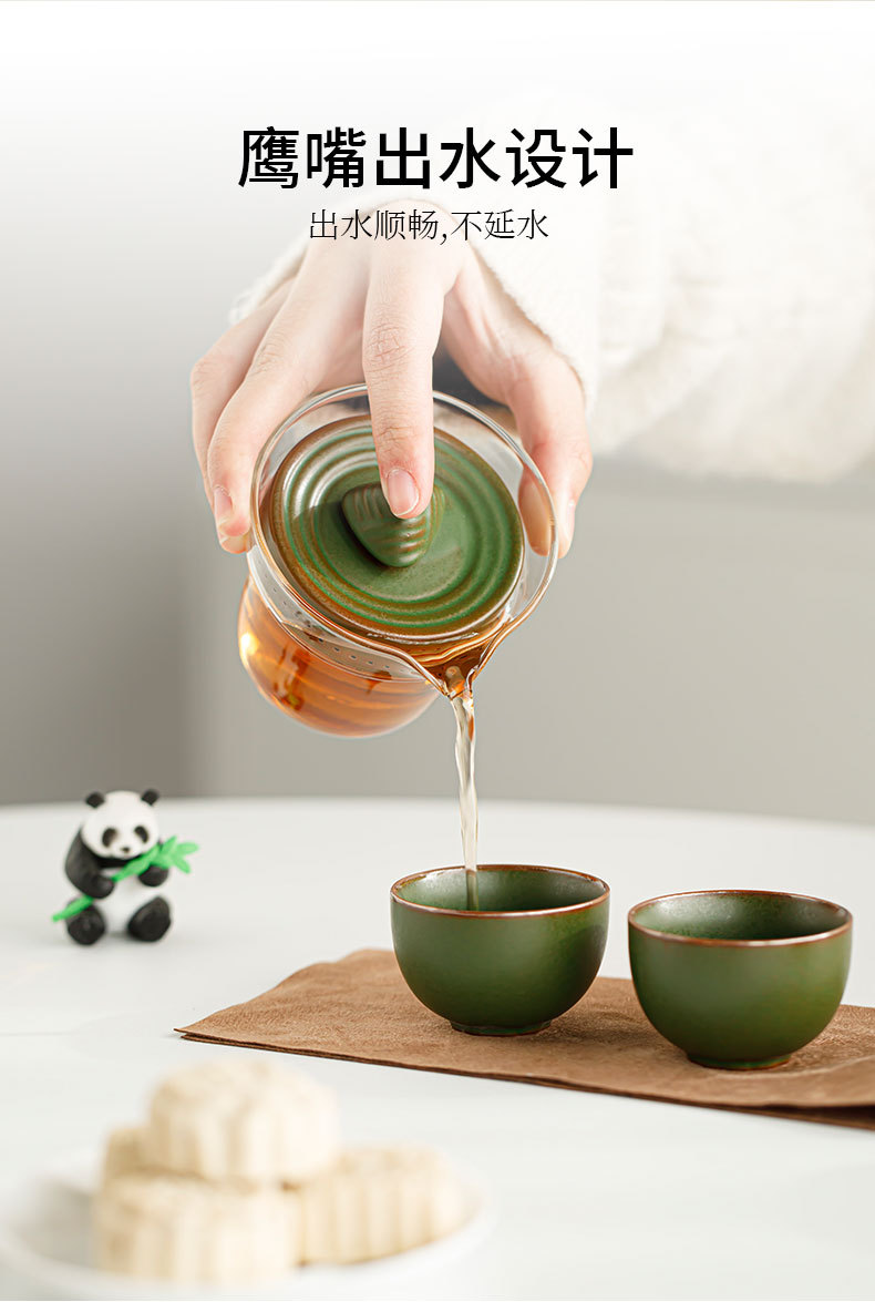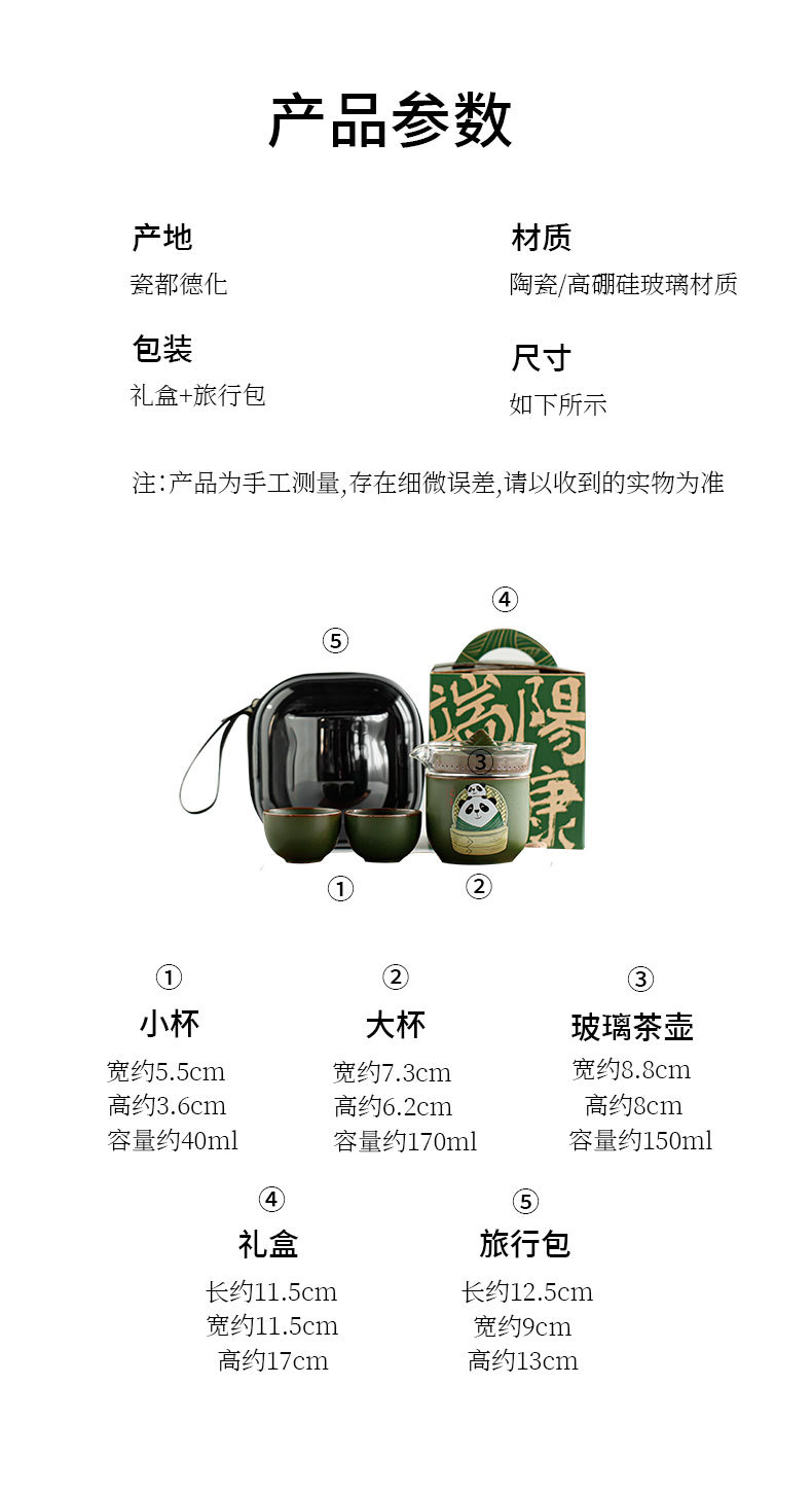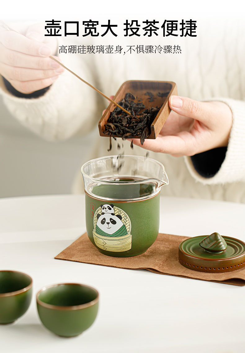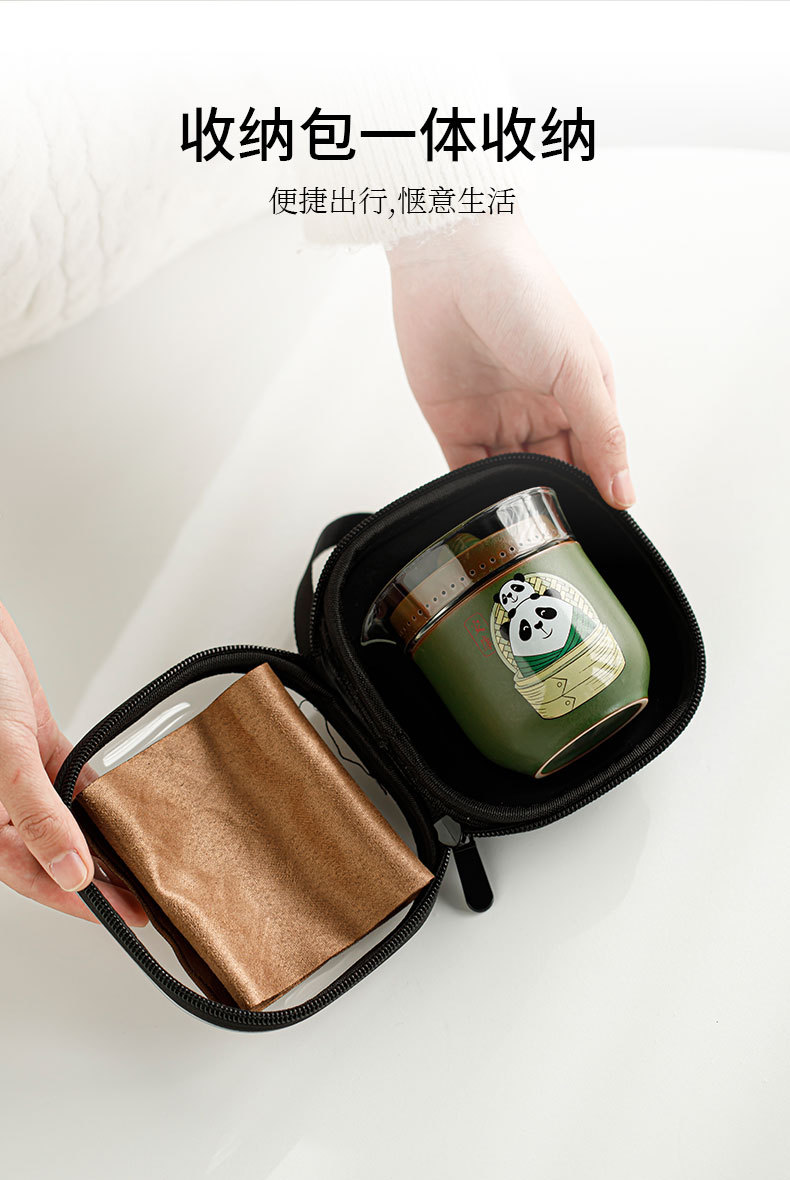 드래곤 보트 축제 팬더 익스프레스 컵 1 포트 3 컵 여행 차 세트 휴대용 가방 쿵푸 티 세트 동반 행사 로고스토어 가기